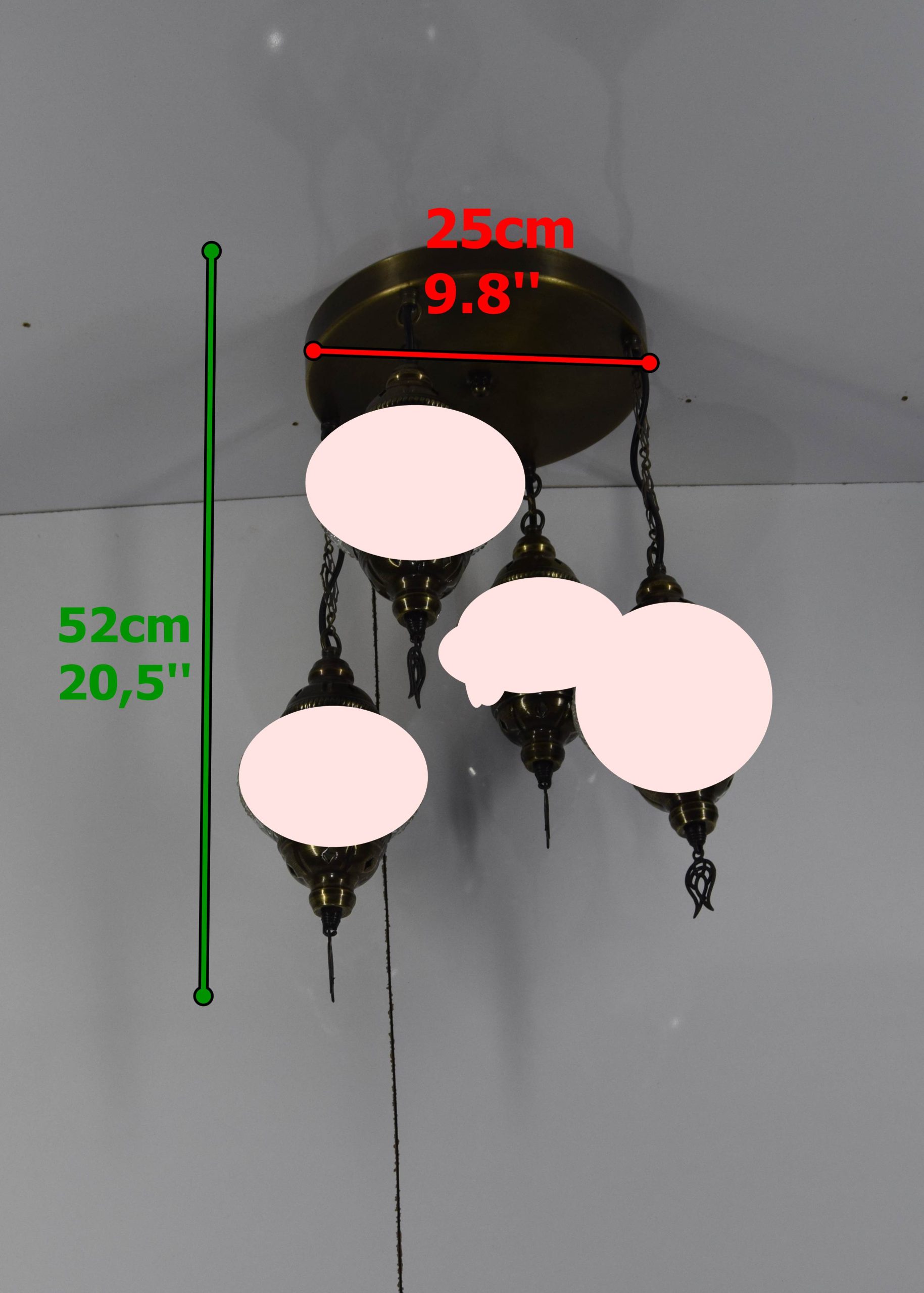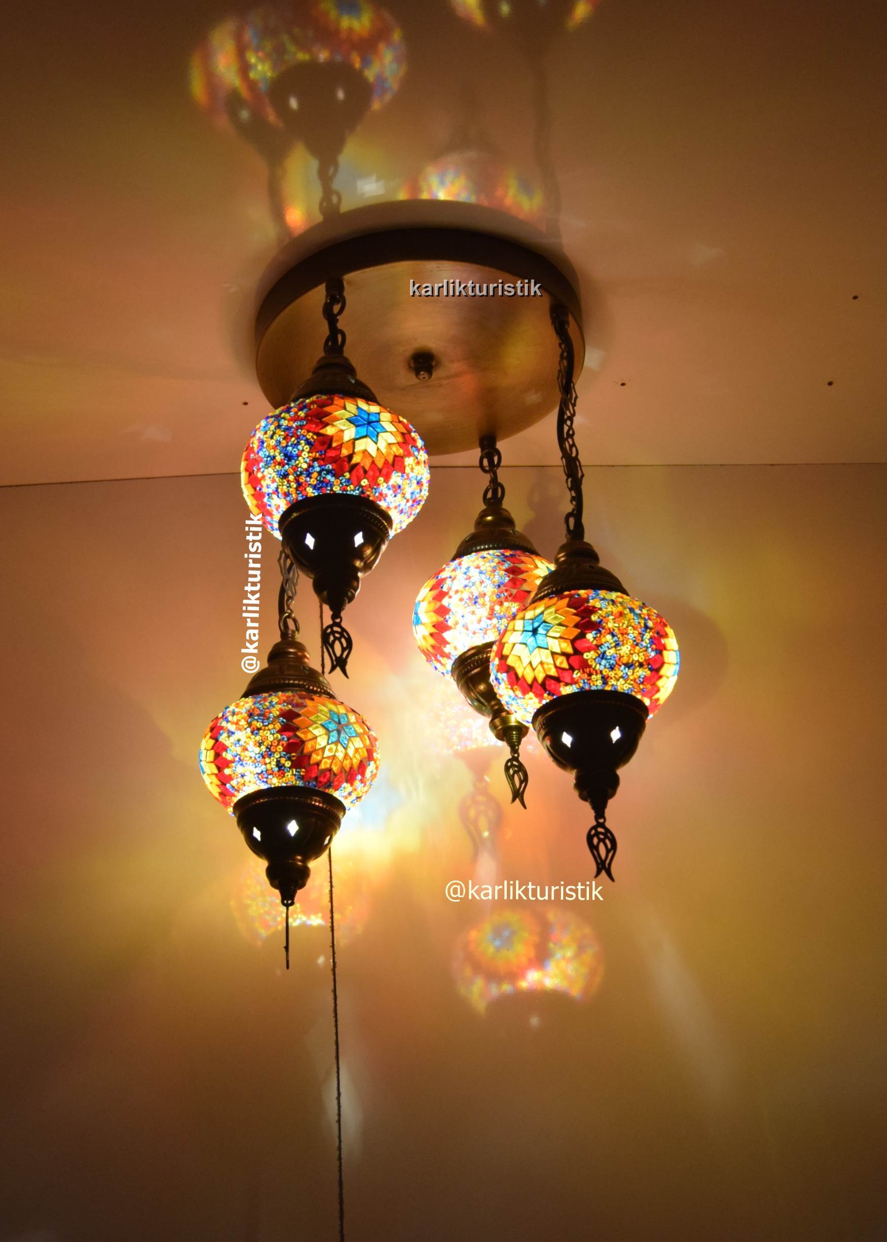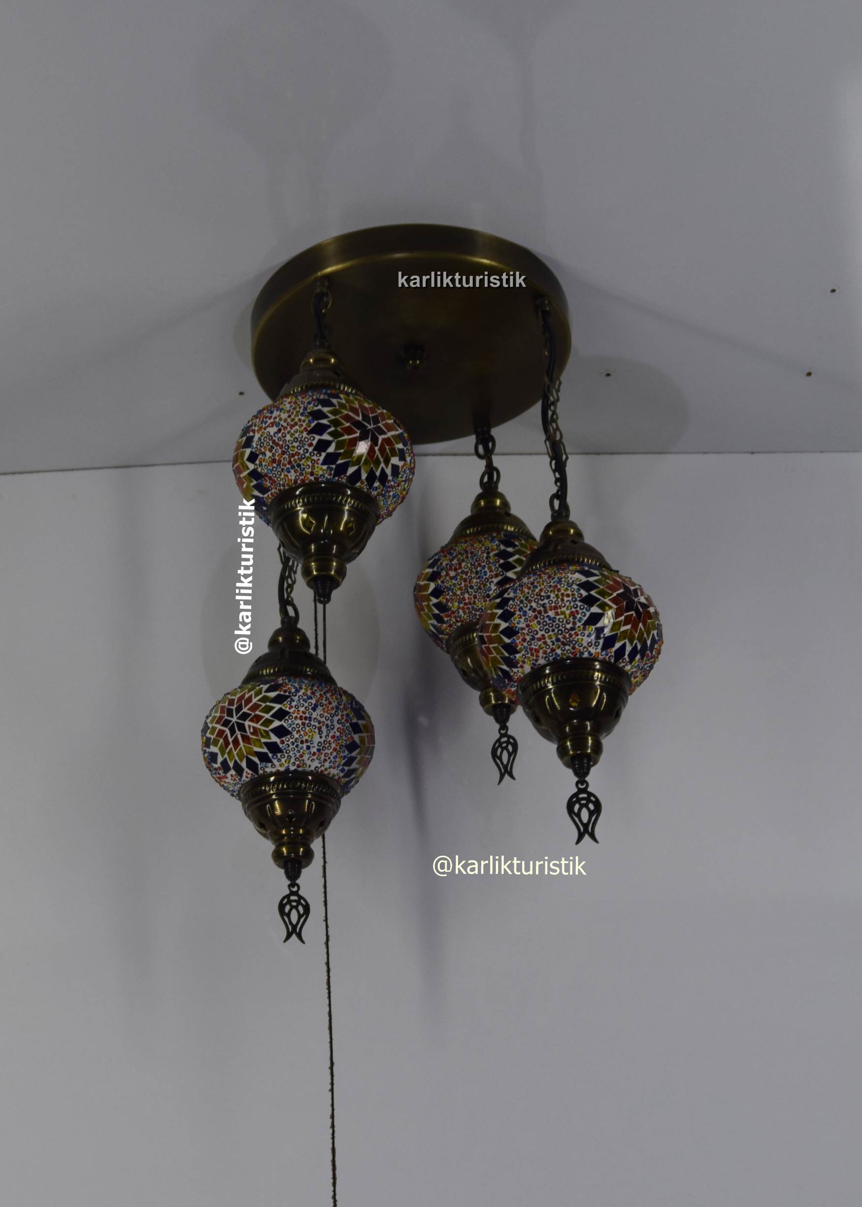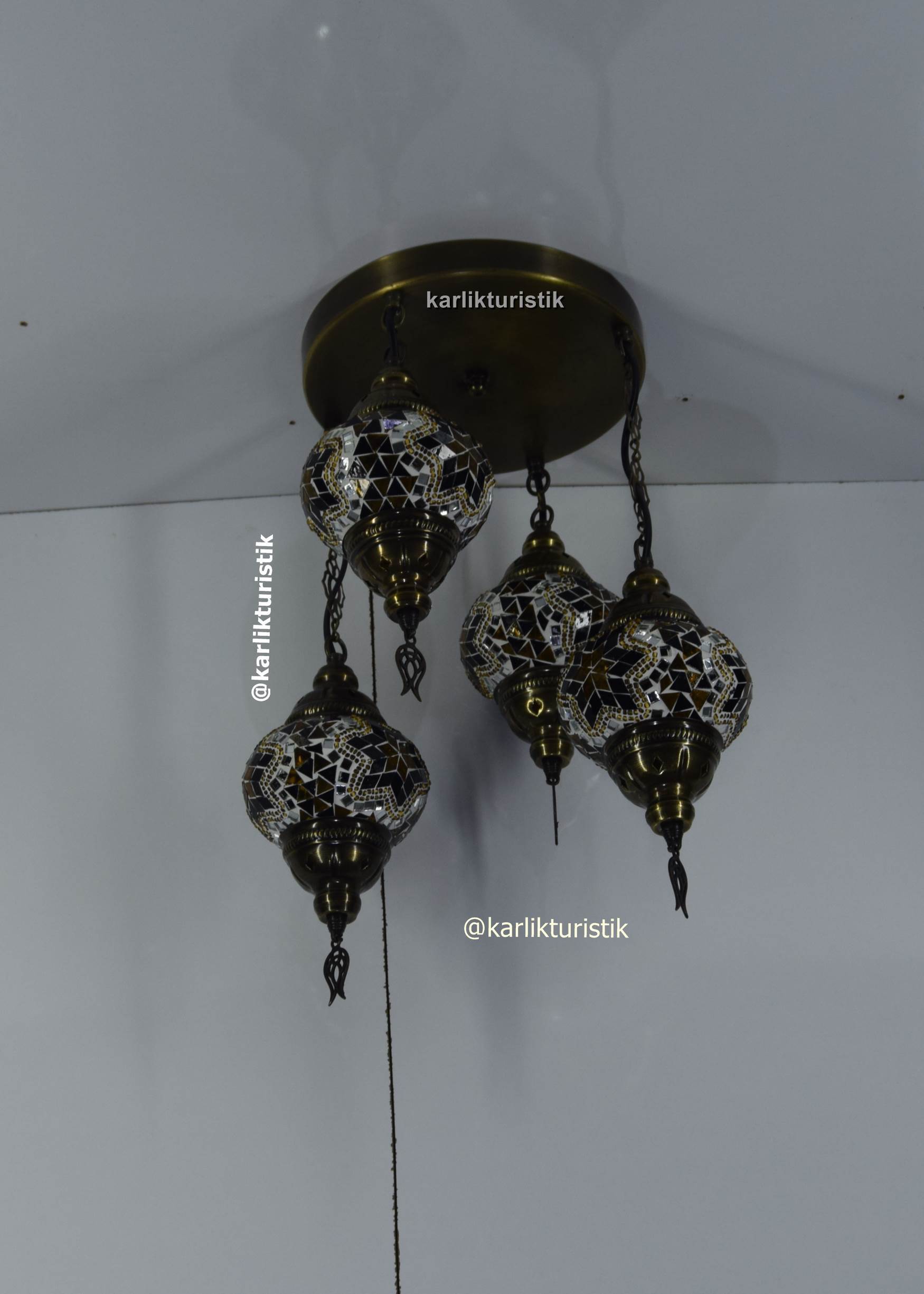 Avize Lamba Gömme Montajlı Tavan Armatürü 4camlı ElYapımı Küçük ev için Dekoratif tarz Otel Avizesi,mozaik lamba, türk yapımı otantik aydınlatma