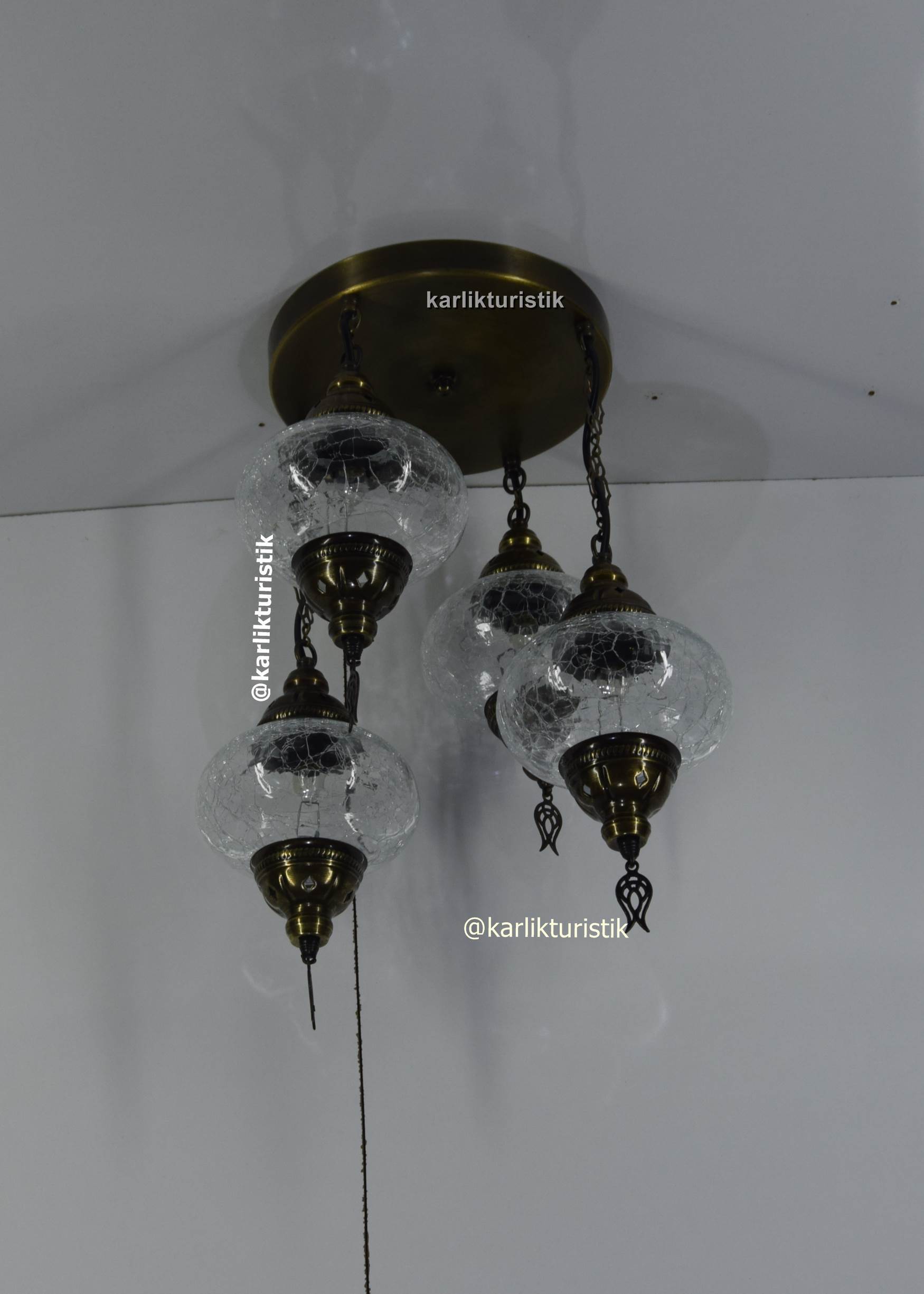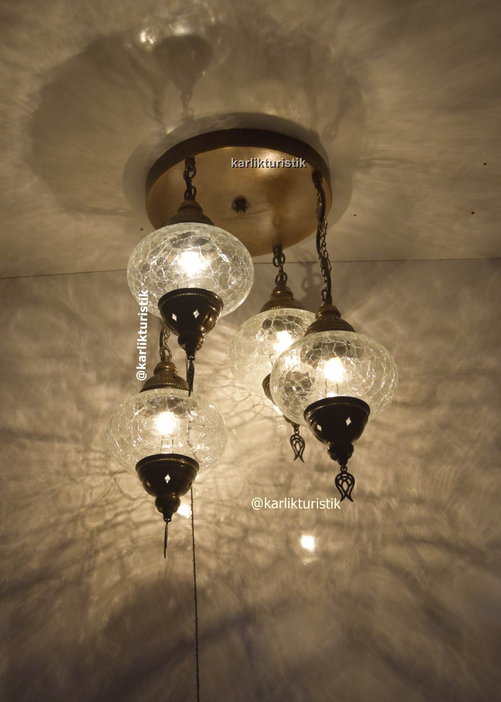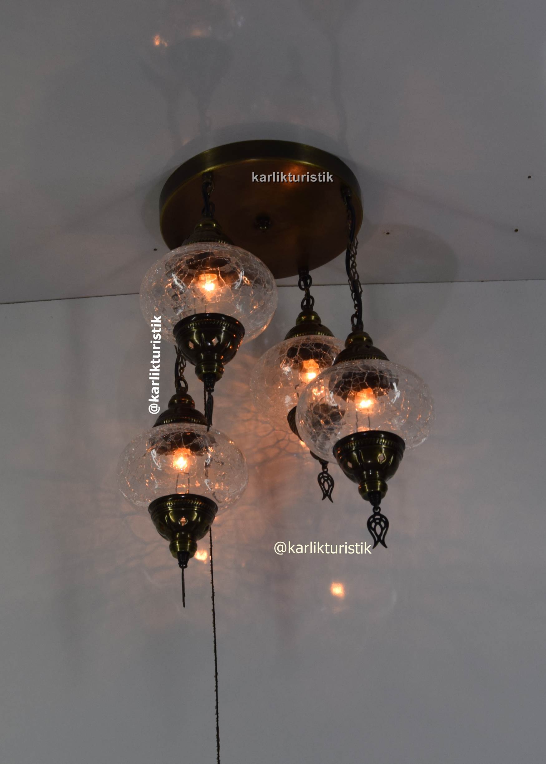 Avize Lamba Tavan Armatürü 4 osmanlı şefaf çatlak camlı Dekoratif tarz Ev-Otel Avizesi, türk yapımı otantik aydınlatma