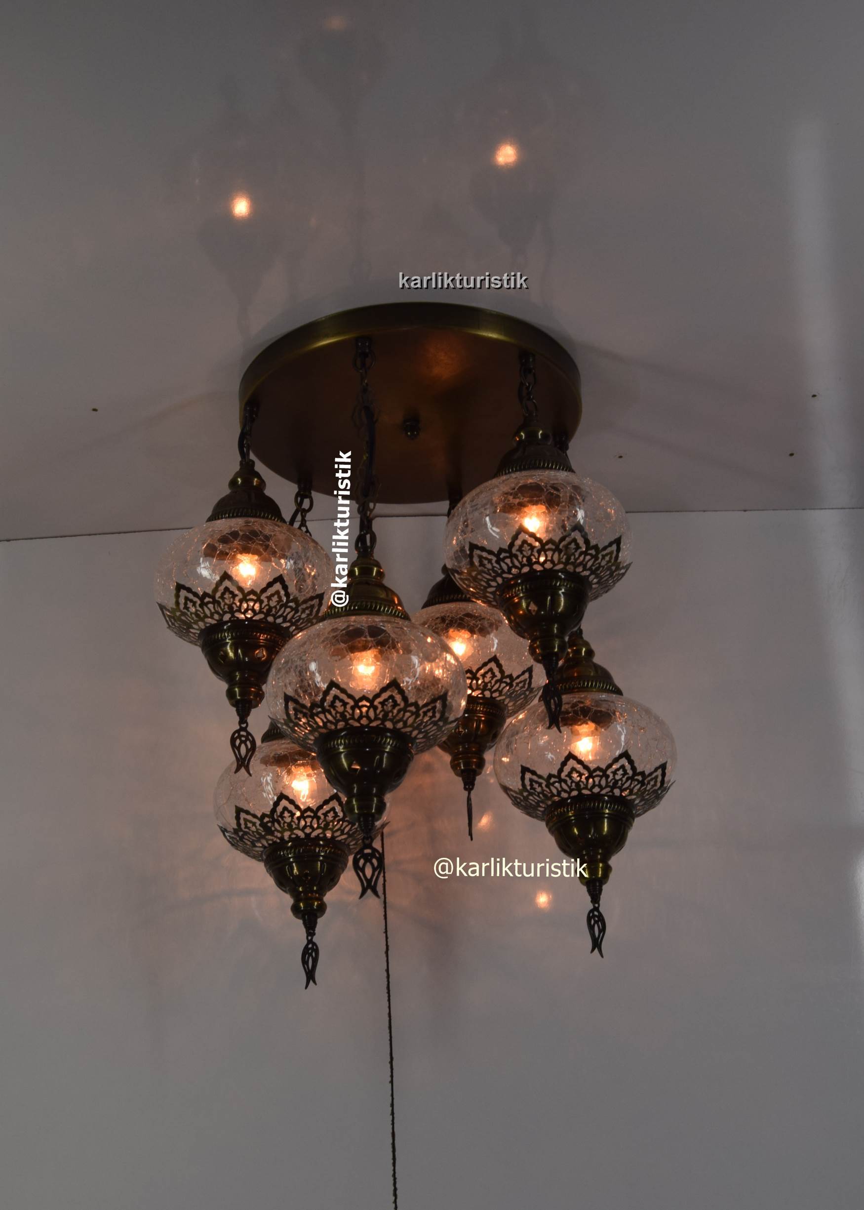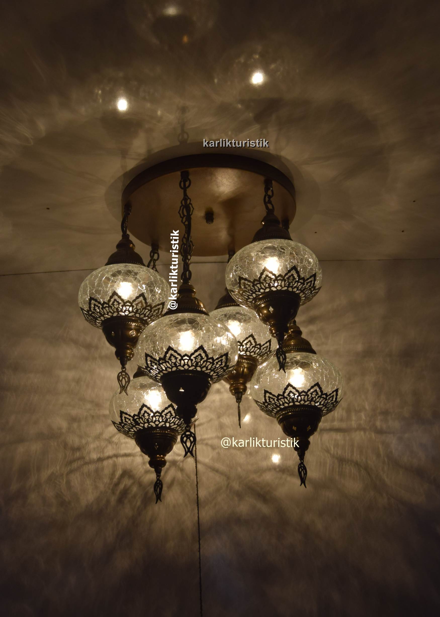 Avize Lamba Tavan Armatürü 6 osmanlı şefaf çatlak camlı lazerli Dekoratif tarz Ev-Otel Avizesi, türk yapımı otantik aydınlatma