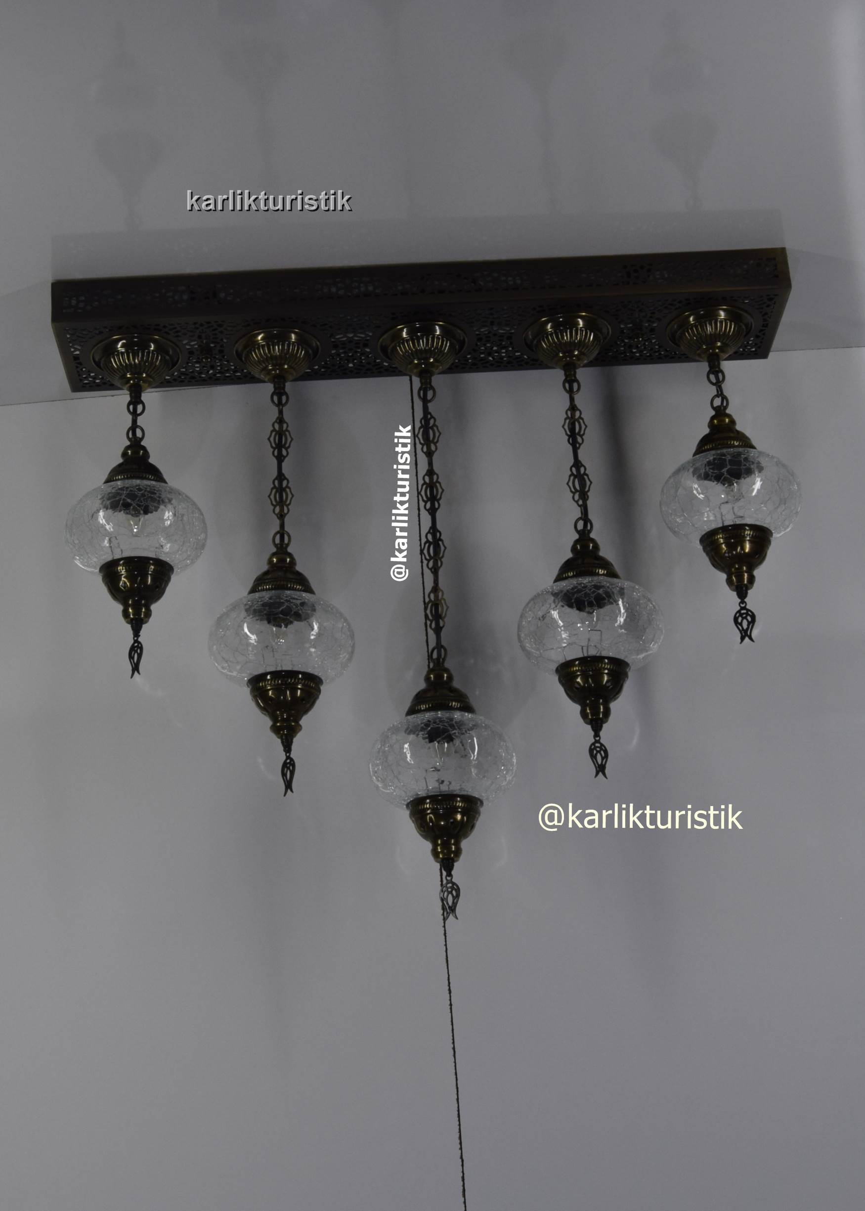 Türk Mozaik Lamba Osmanlı Tarzı 5 Küre Avizeler Osmanlı Asılı Gece Aydınlatma Geleneksel Antika Lamba