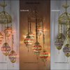 Türk Sarkıt, Türk El Yapımı Cam Asma Lamba, Telkari LAMBA Beş Küre, Özel Bakır Lamba, Telkari Sanat Lambası Tavan