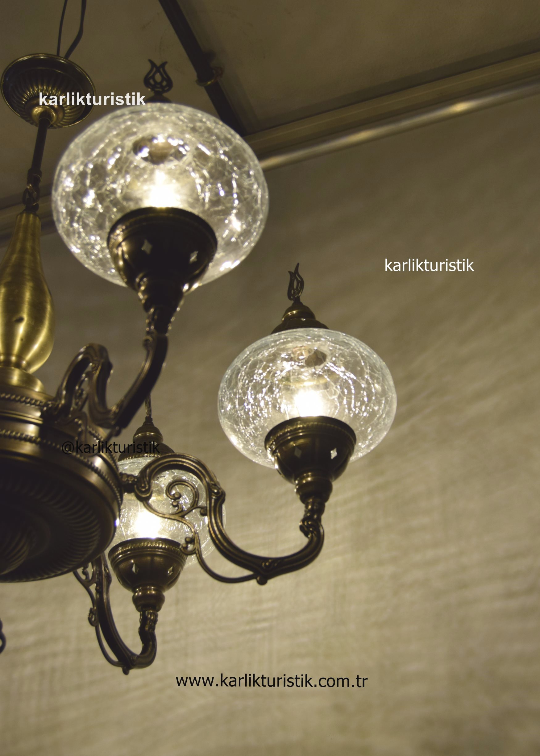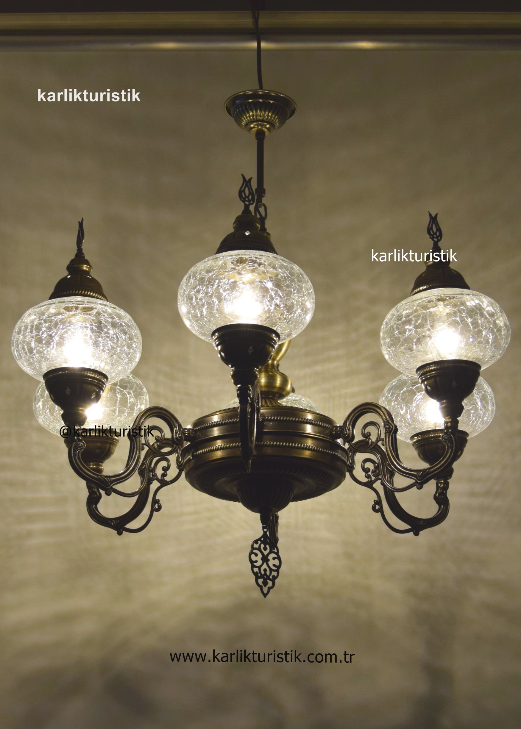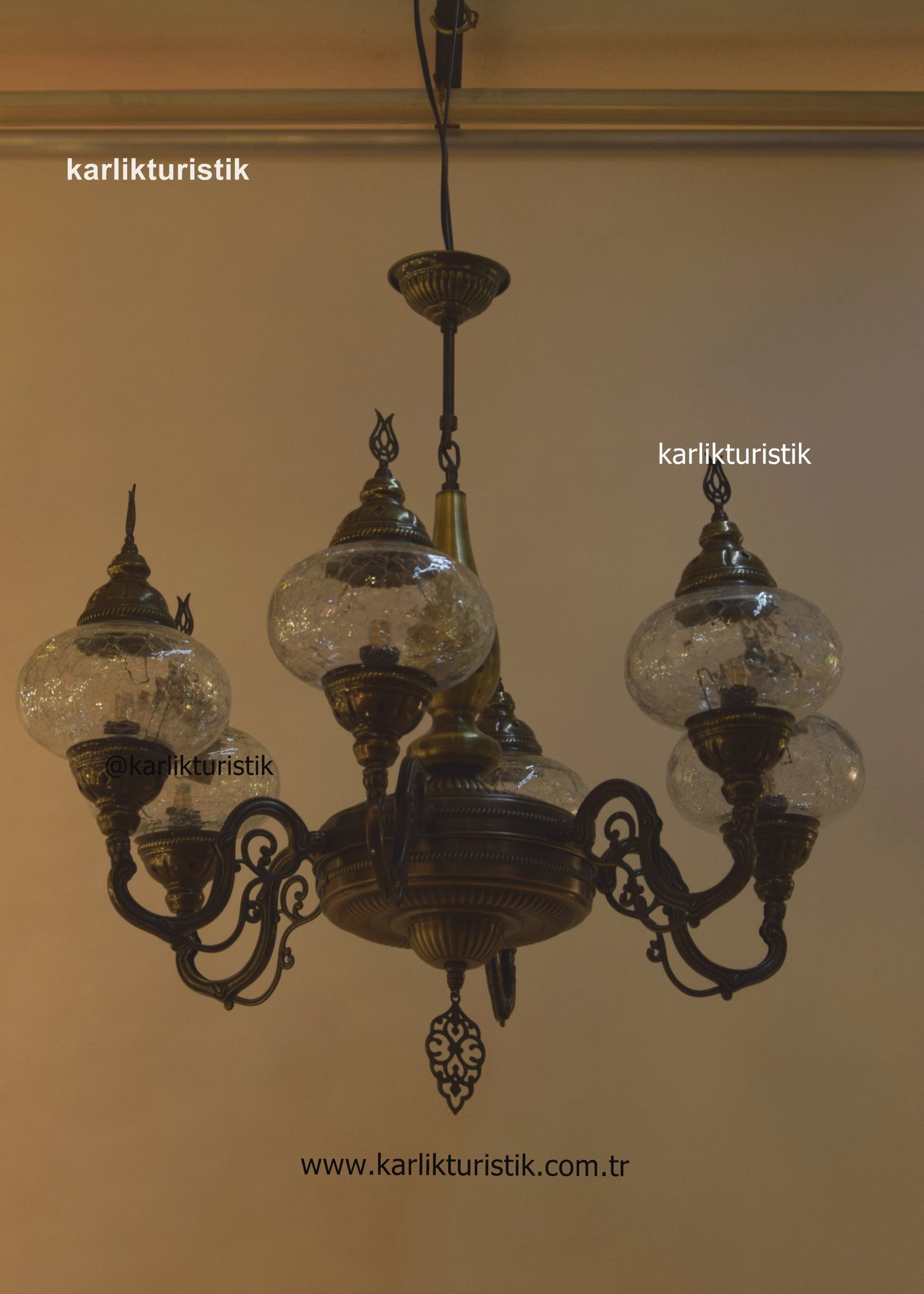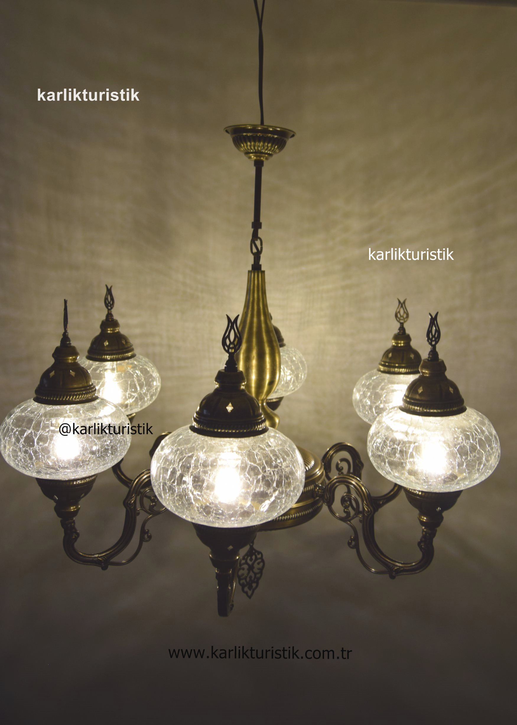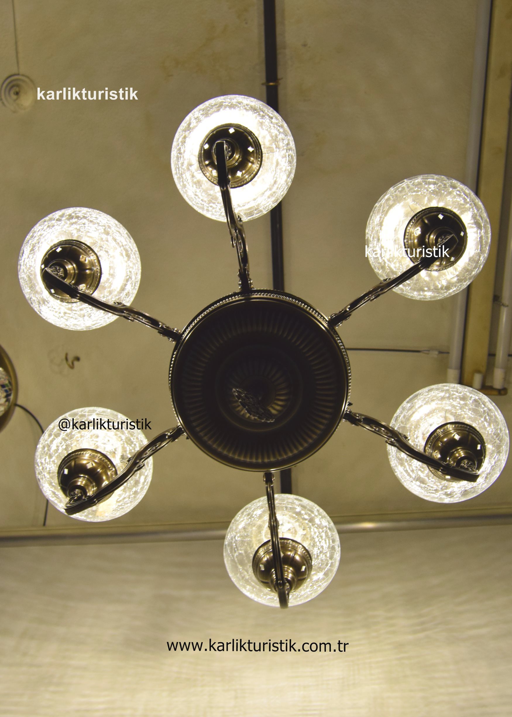 Geleneksel, türk ve osmanlı tavan aydınlatması lobi avizesi, Oturma Odası Sarkıt Lambası, Otel Avizesi, 6 Kollu şefaf çatlak camlı lamba