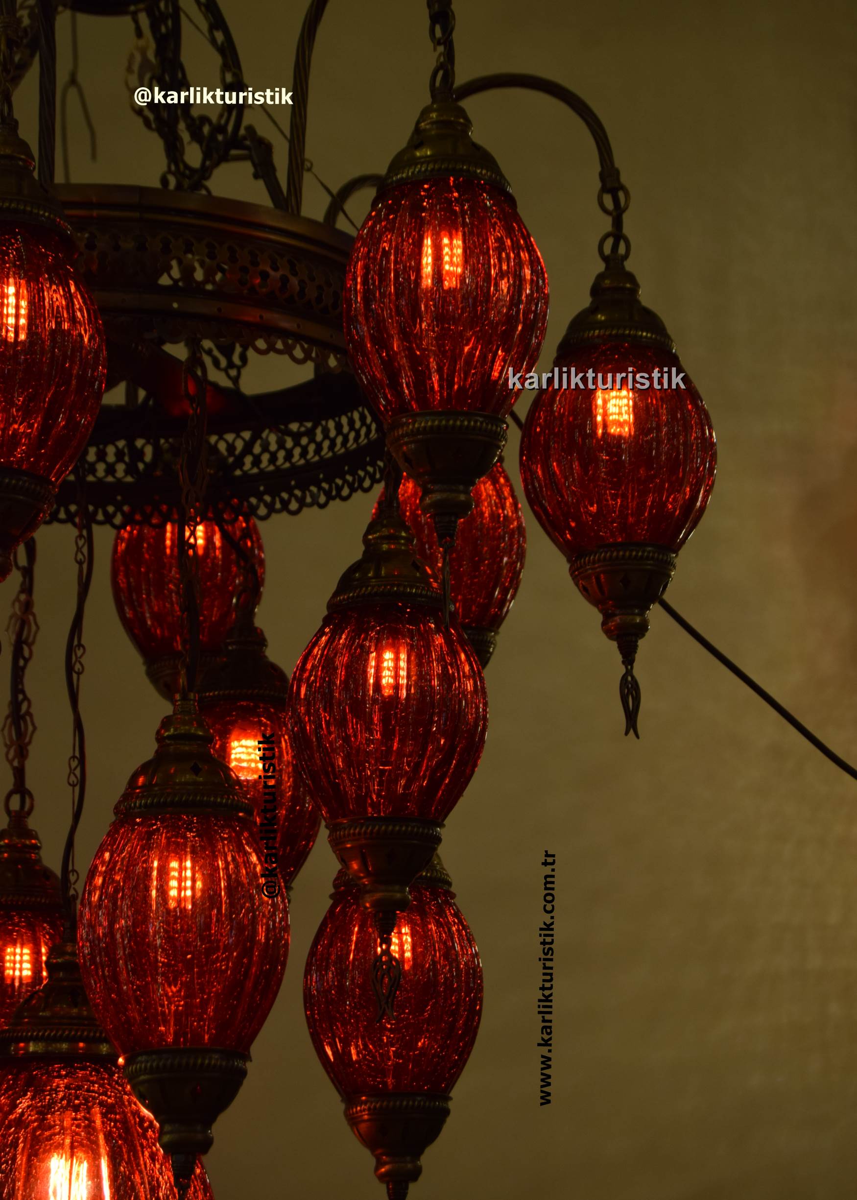 Restoran Avizesi, Üfleme Cam Lamba Avizeleri, Türk Lambası, Asma Lamba – SARKIT 17 Camlı AVİZE OTANTİK