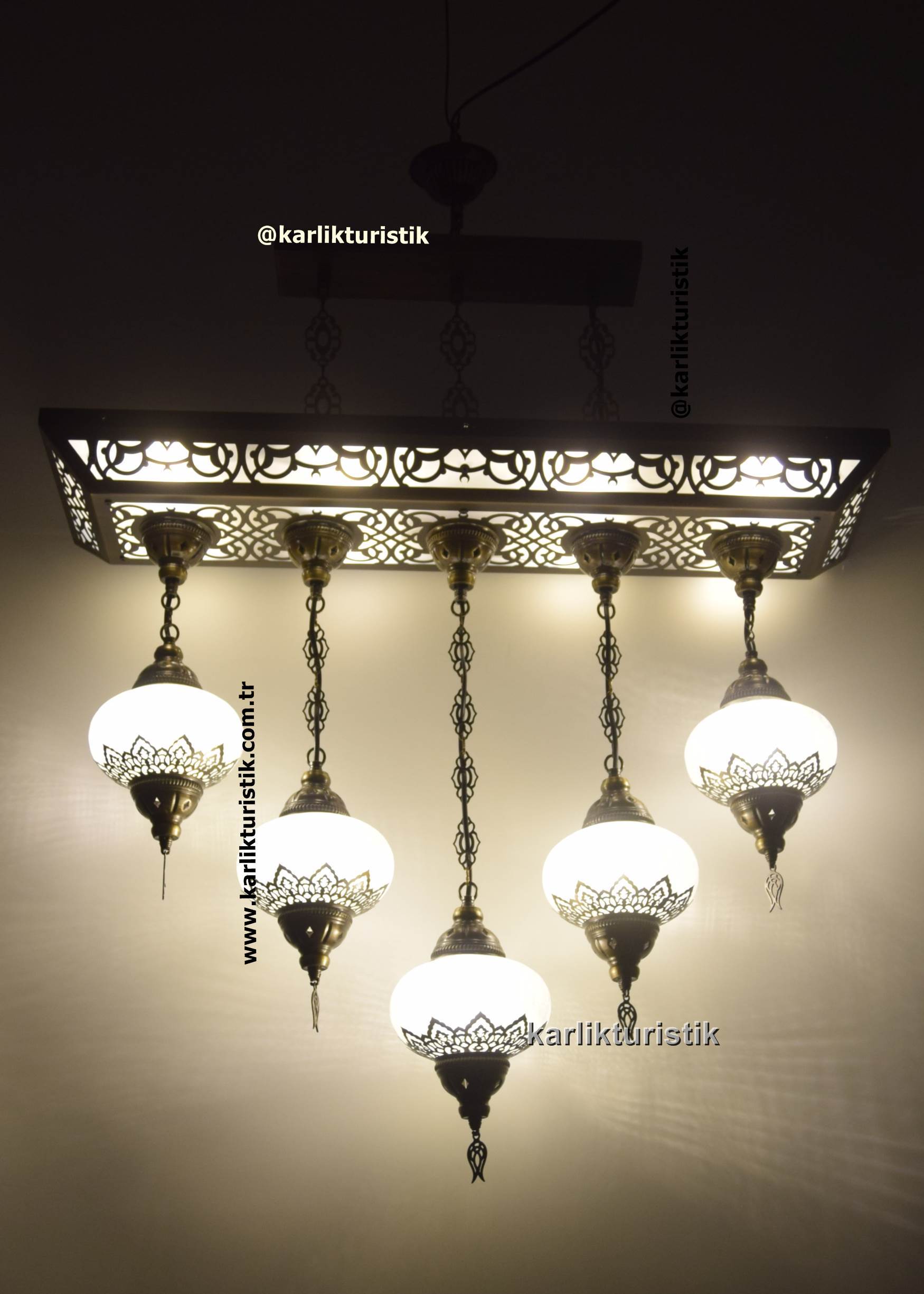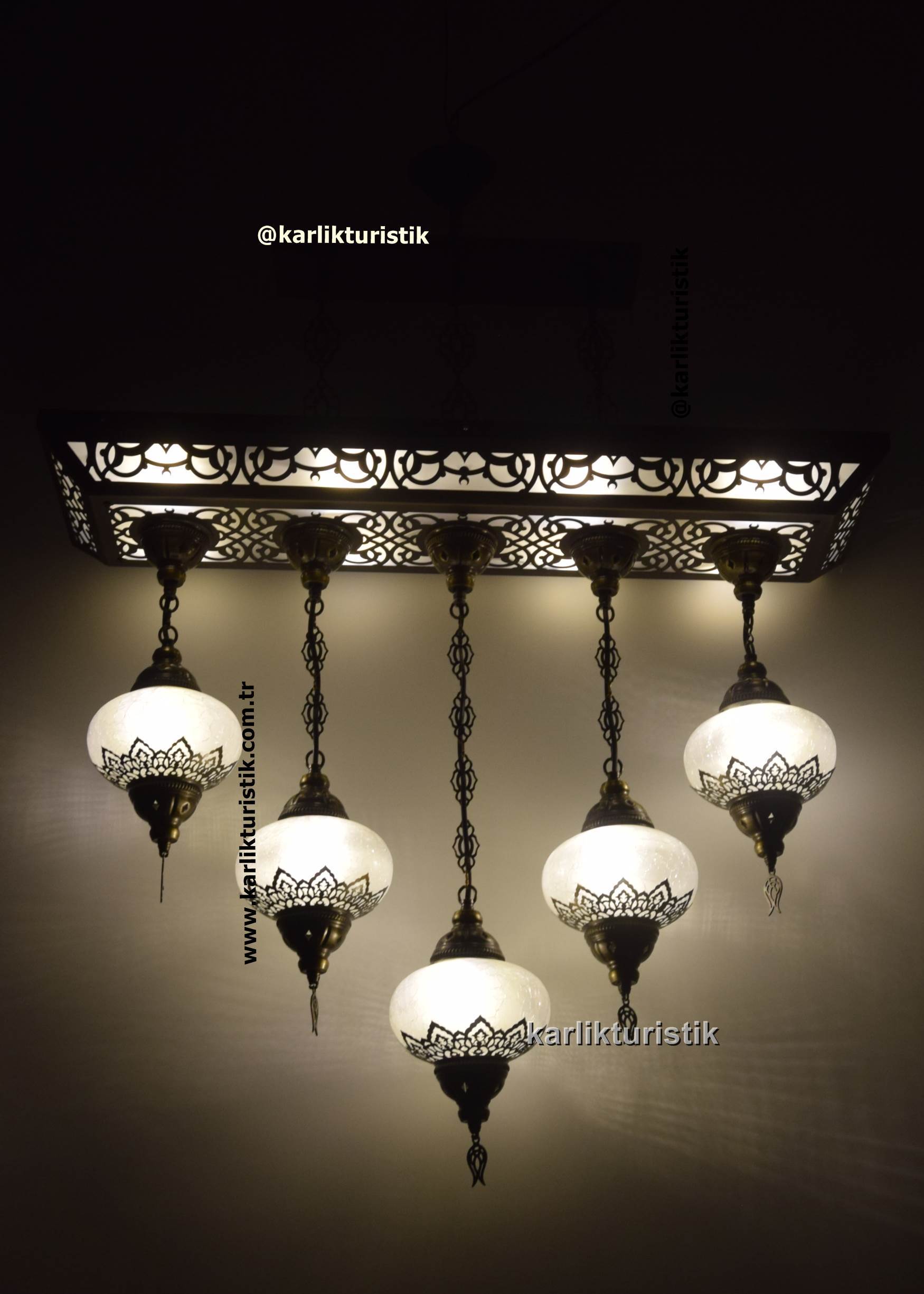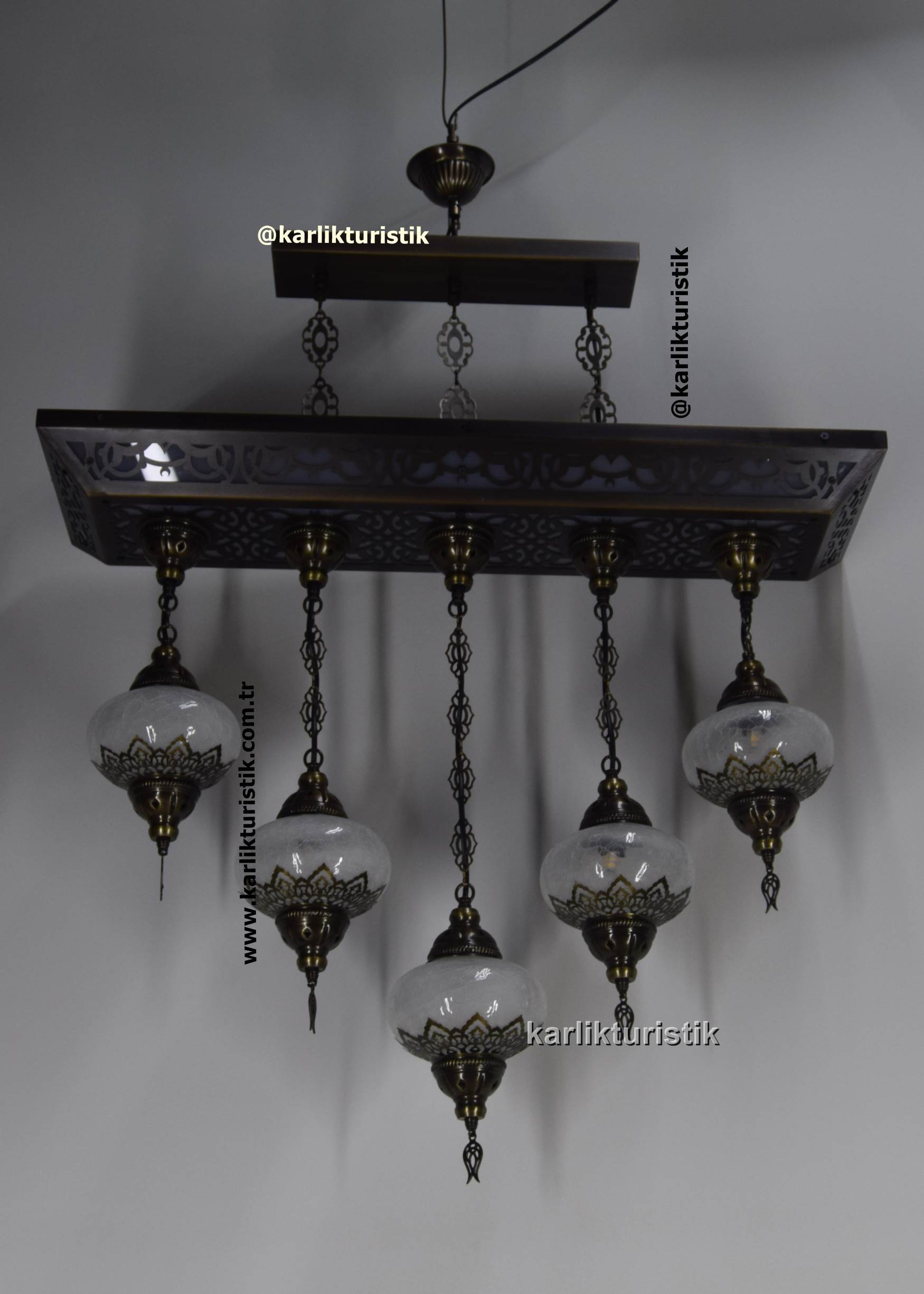 Modern Klasik Osmanlı Tarzı 5’li Şeffaf çatlak kumlamalı lazerli Sarkıt Avize – El Yapımı Türk Lambası Seti, Dekoratif Mutfak & Restoran Avizesi