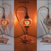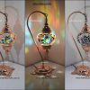 Mozaik Lamba Abajur Bakır Reng, Kaplama ,Mozaik Masa Lambası Osmanlı Türk Mozaik Kuğuboynu Lamba Renkli