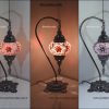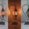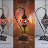 Mozaik Lamba Abajur Füme Renk, Kaplama ,Mozaik Masa Lambası Osmanlı Türk Mozaik Kuğuboynu Lamba Renkli