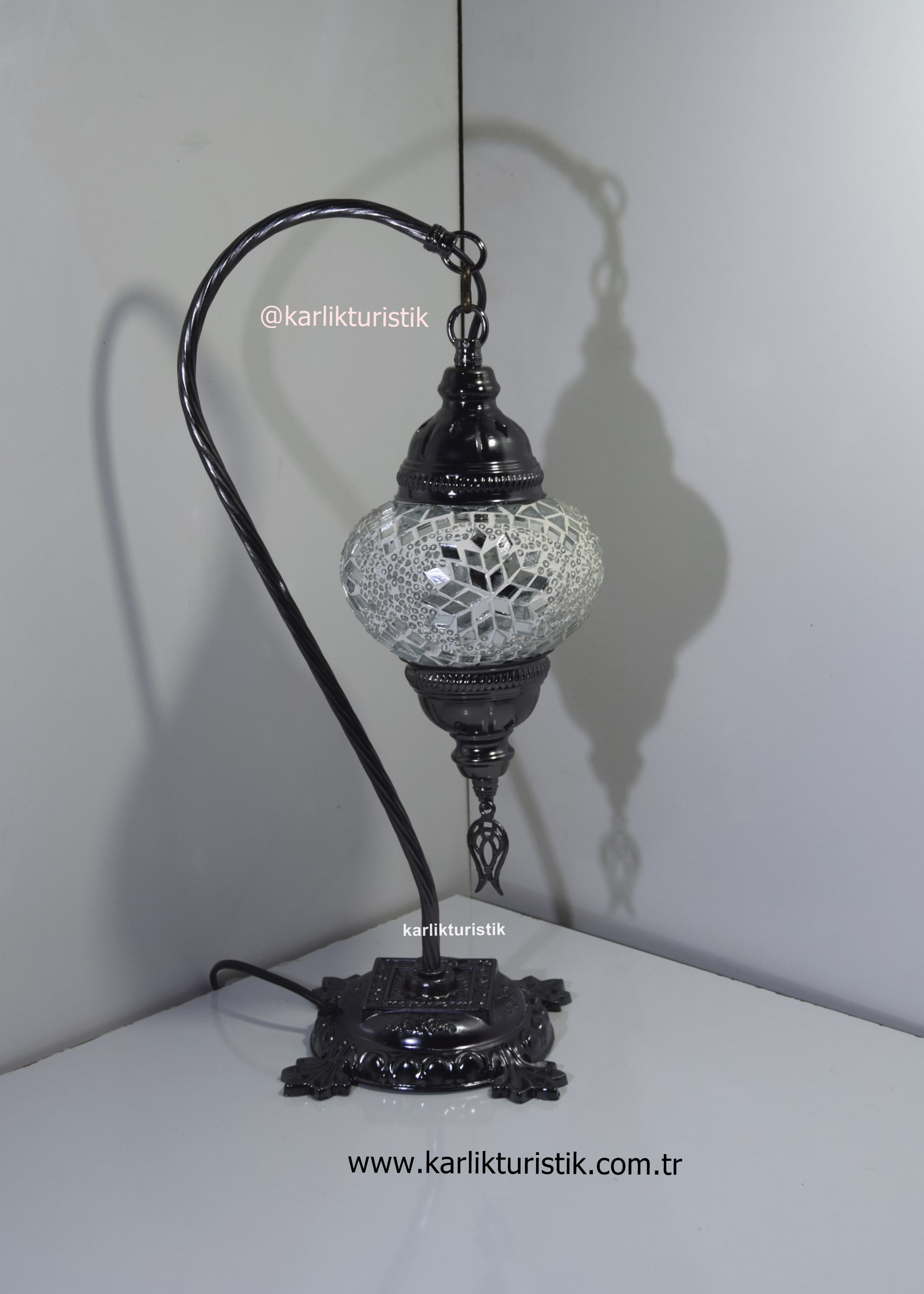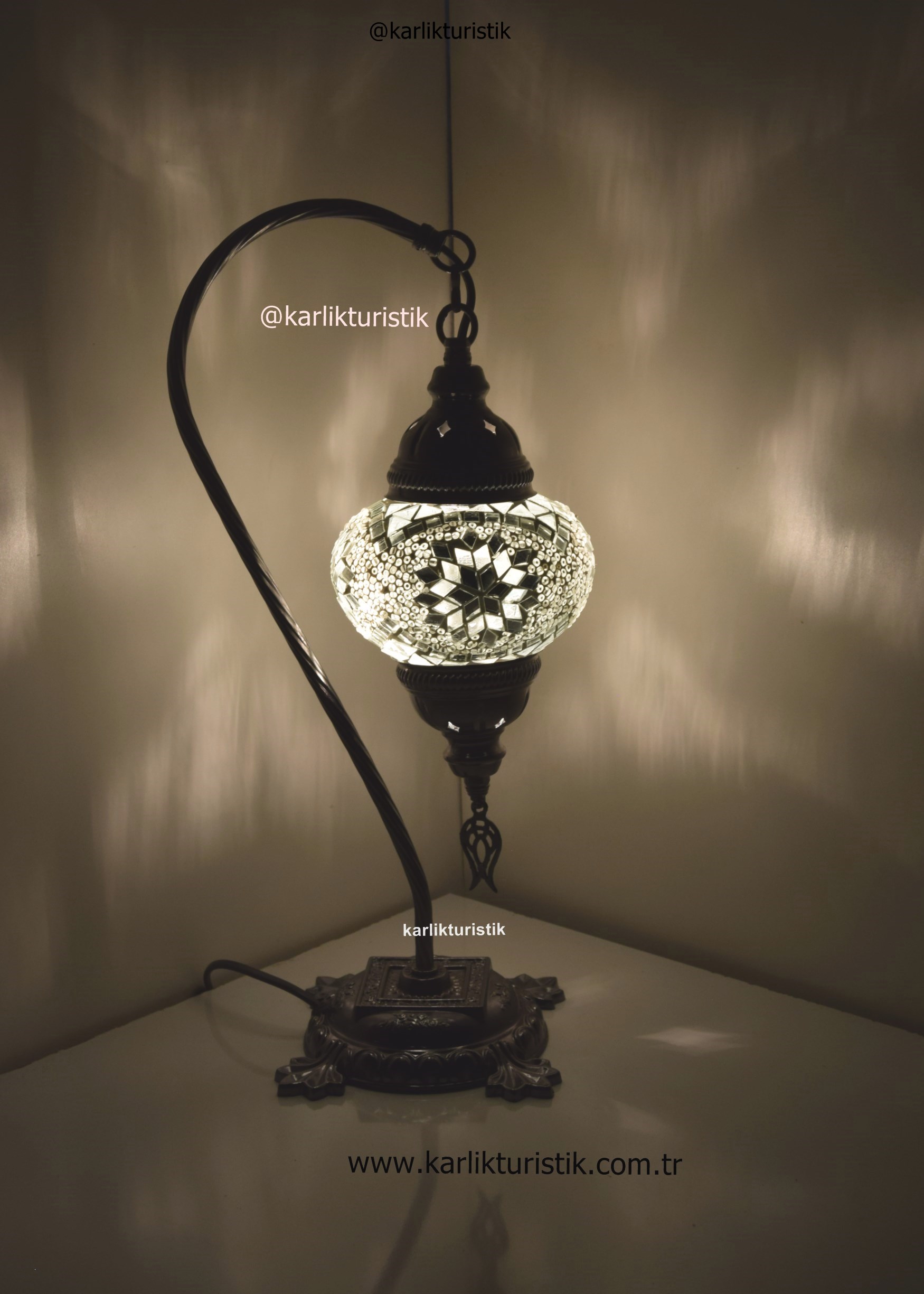 Mozaik Camlı Sıvama Deveboynu,Kuğuboynu,Borulu Dekoratif Lamba. .Ürünün apratı metal sıvamadan oluşmaktadır.Aparatına extra vernik atılarak ,daha uzun ömürlü ve daha parlak olmakdadır. Ürünler yollanmadan tektek denenmektedir. Kullanılan kablolar kaliteli Ce sertifikalıdır. Ürün üzerinde Ce sertikalı duy bulunmaktadır.Ayrıca üründe açma kapama anahtarı ve fiş bulunmakdadır. Ürün tamamen türk malıdır.