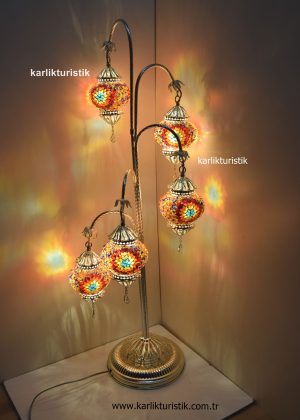 Türk el yapımı ayaklı lamba, Bakır Telkari Sanat 11 top ayaklı lamba, köşe lambası, Türk Lambader, mozaik ev lambası, dekoratif alev