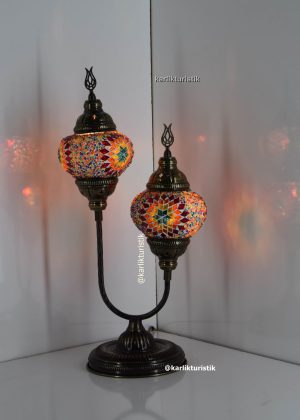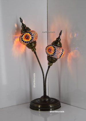 Hediyelik Eşya ,Mozaik Masa üstü Lamba ikili U abajur antik