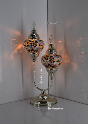 Hediyelik Eşya ,Mozaik Masa üstü Lamba ikili U abajur gümüş kaplama