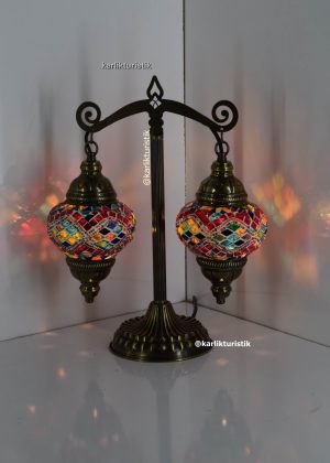 Mozaik masa lambası Çift Camlı, Türk Abajur Lamba, Tiffany Lamba, Ayaklı Lamba El Yapımı Zemin Lambası I-S-T-5024