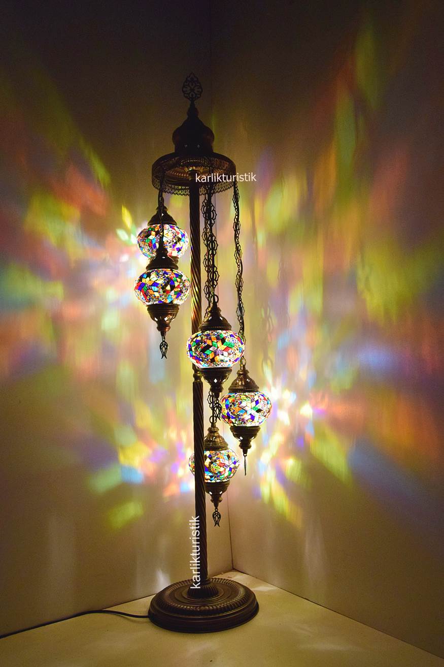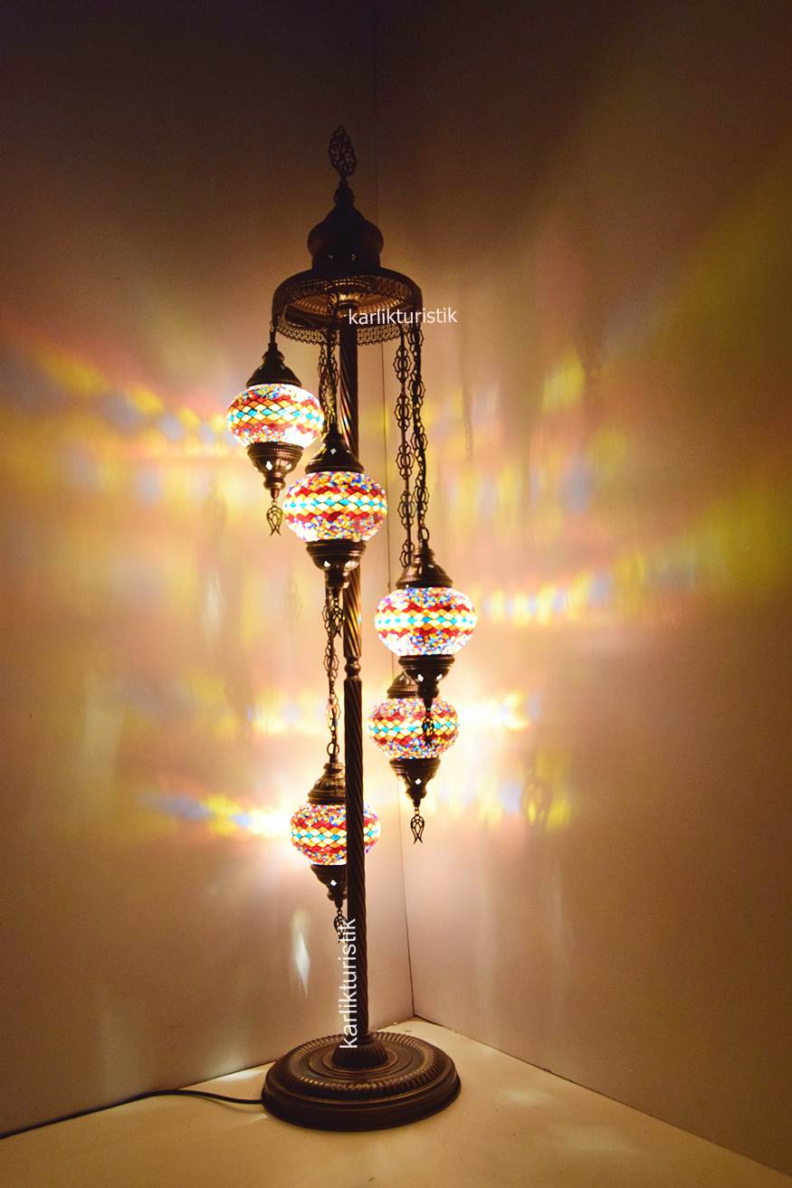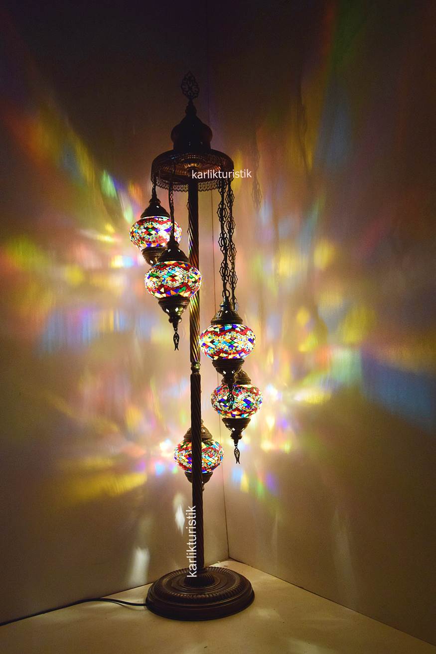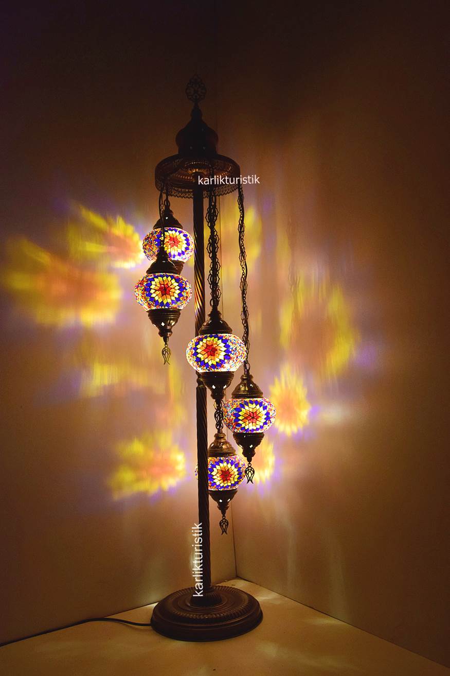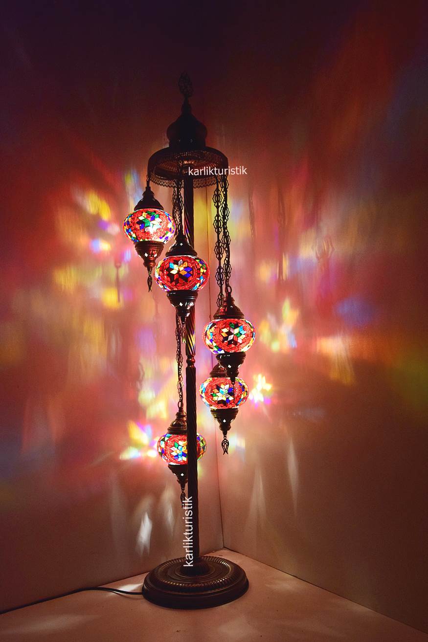 Mozaik Lambader,Otantik Lamba,Dekoratif Köşe Lambası 5 Lİ Mozaik Gece Lambası I-S-F-5503