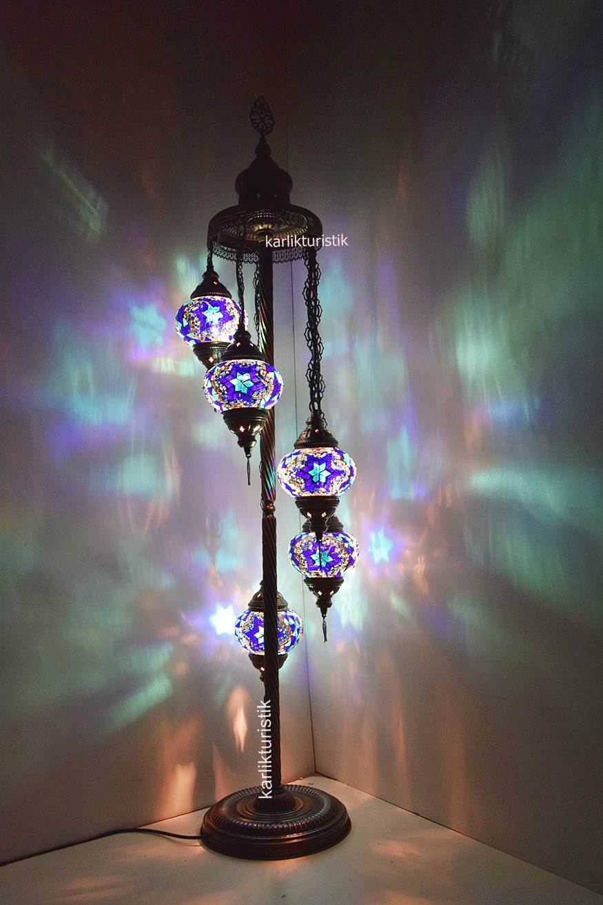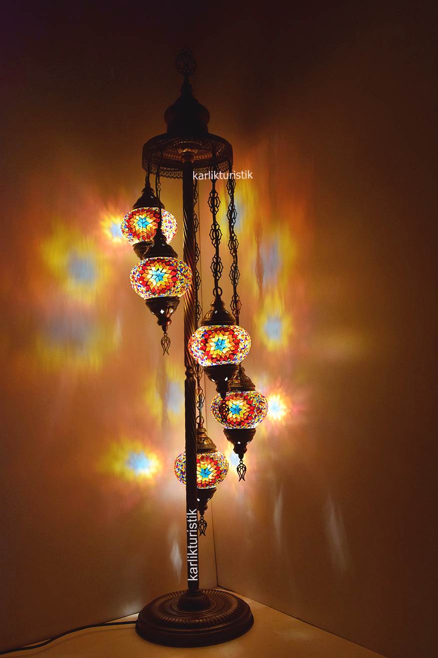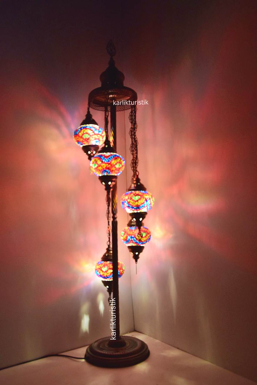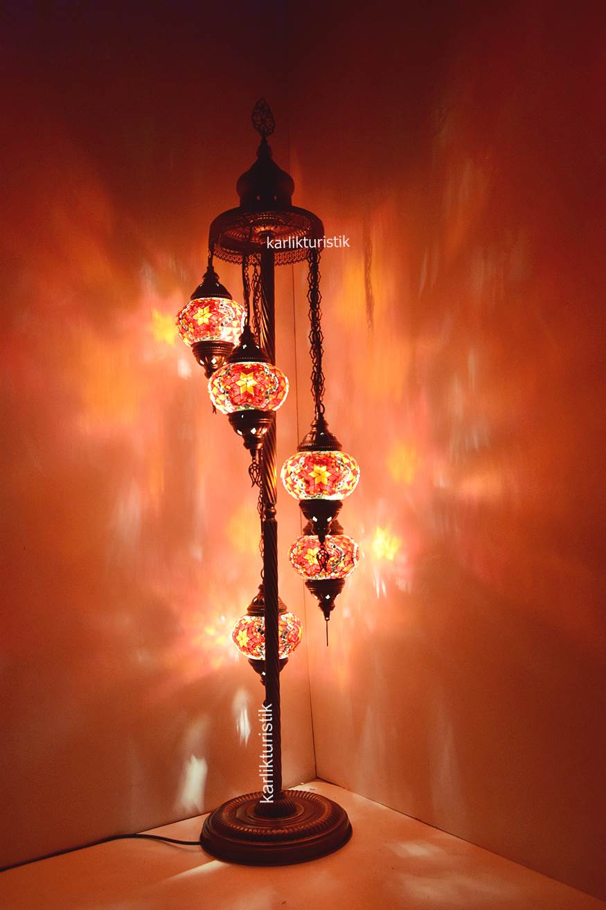 Mozaik Lambader,Otantik Lamba,Dekoratif Köşe Lambası 5 Lİ Mozaik Gece Lambası I-S-F-5503