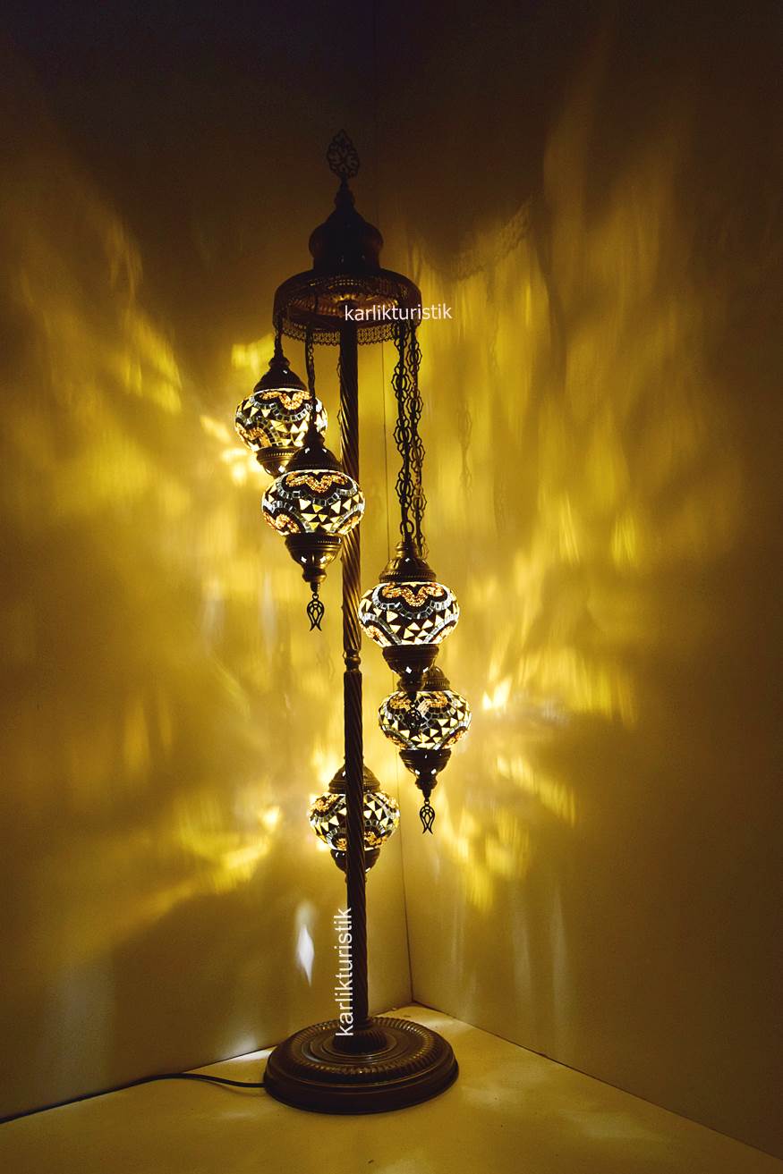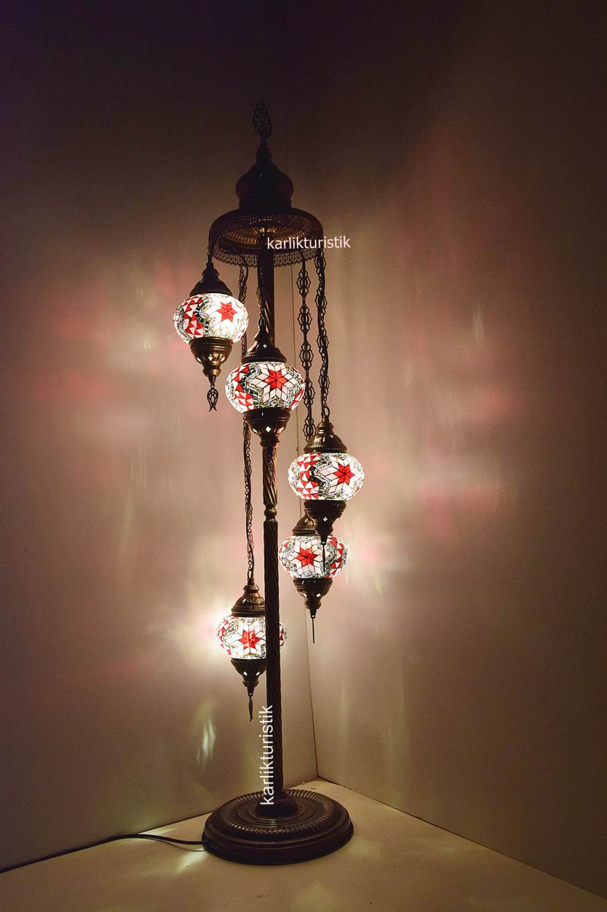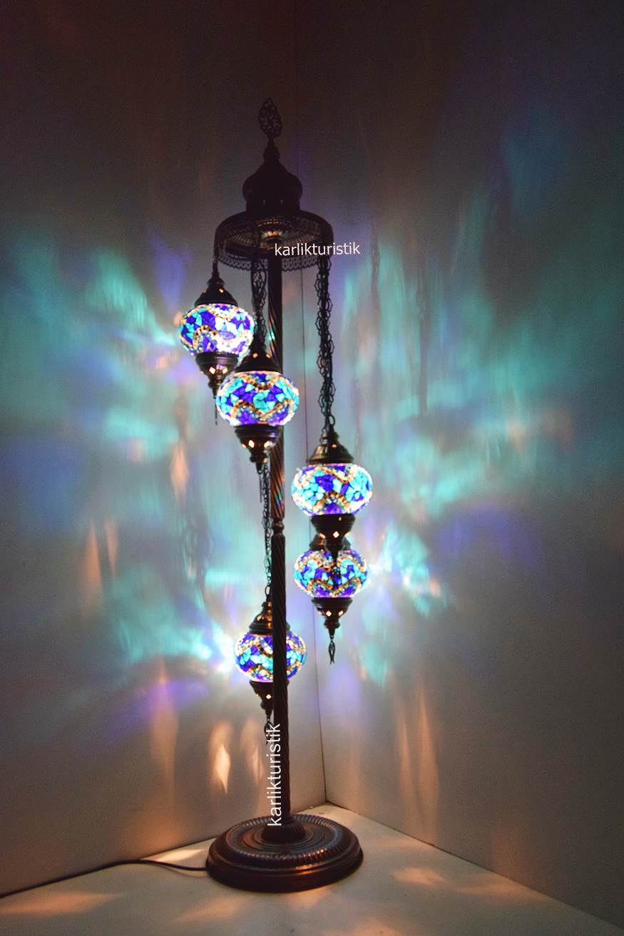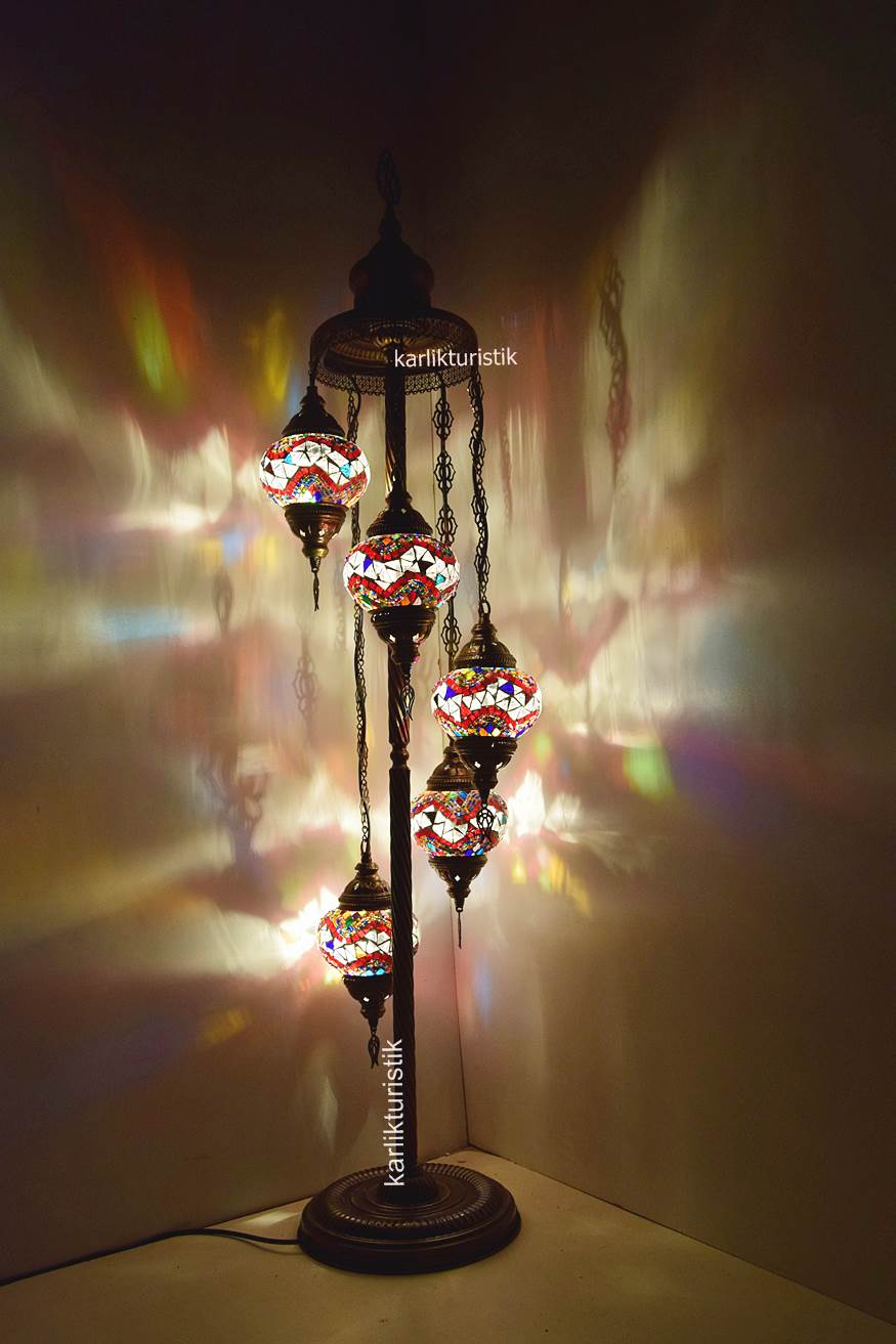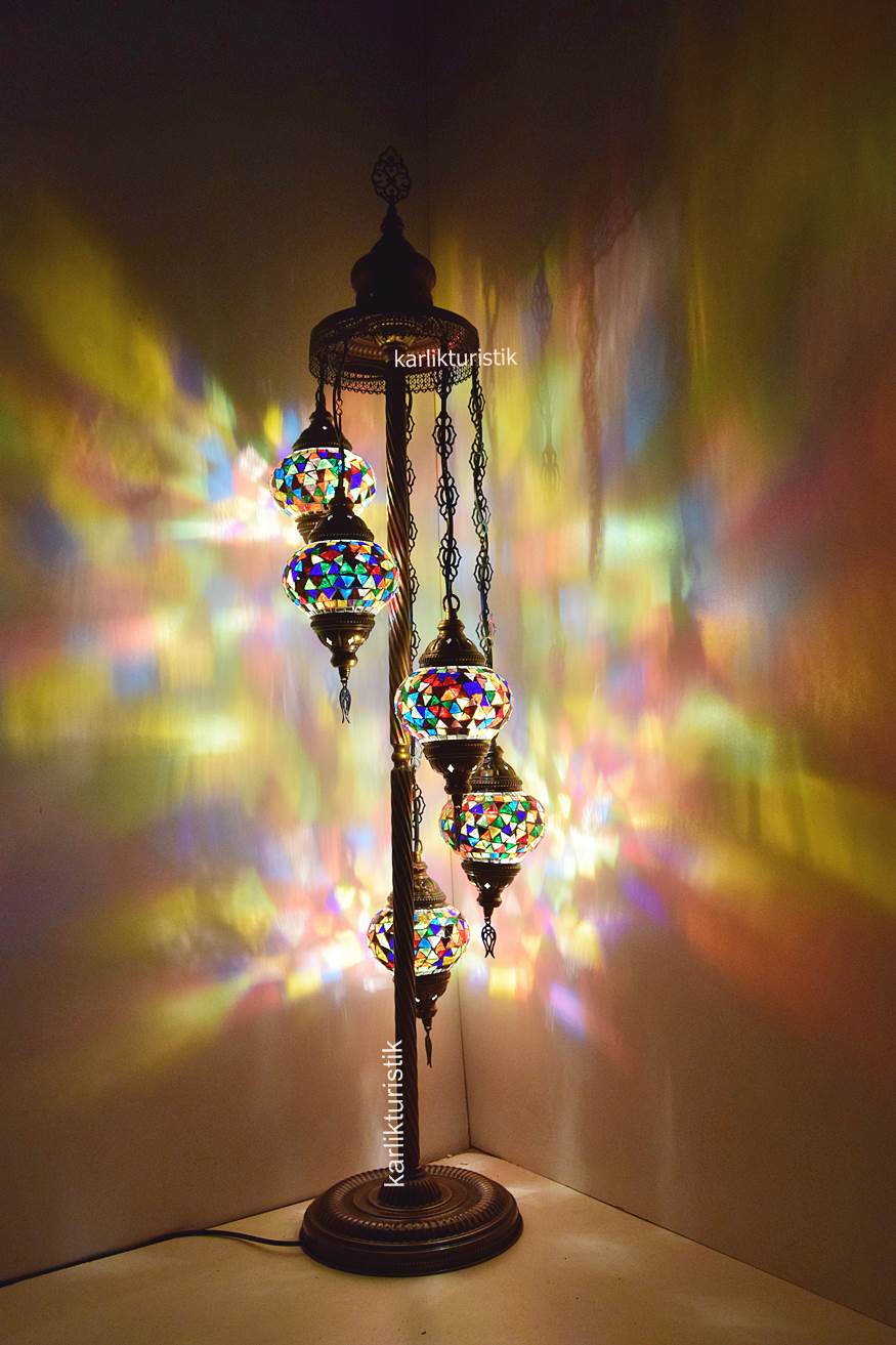 Mozaik Lambader,Otantik Lamba,Dekoratif Köşe Lambası 5 Lİ Mozaik Gece Lambası I-S-F-5503