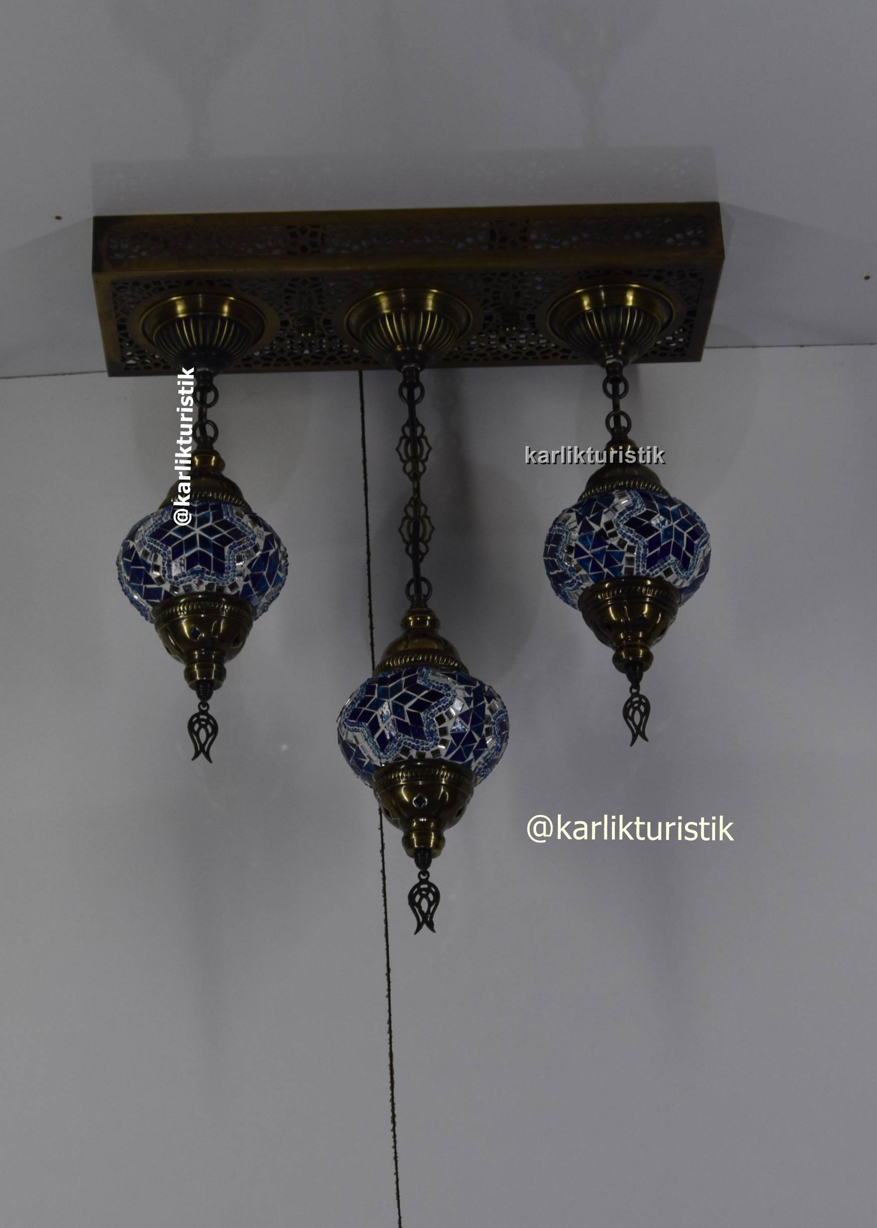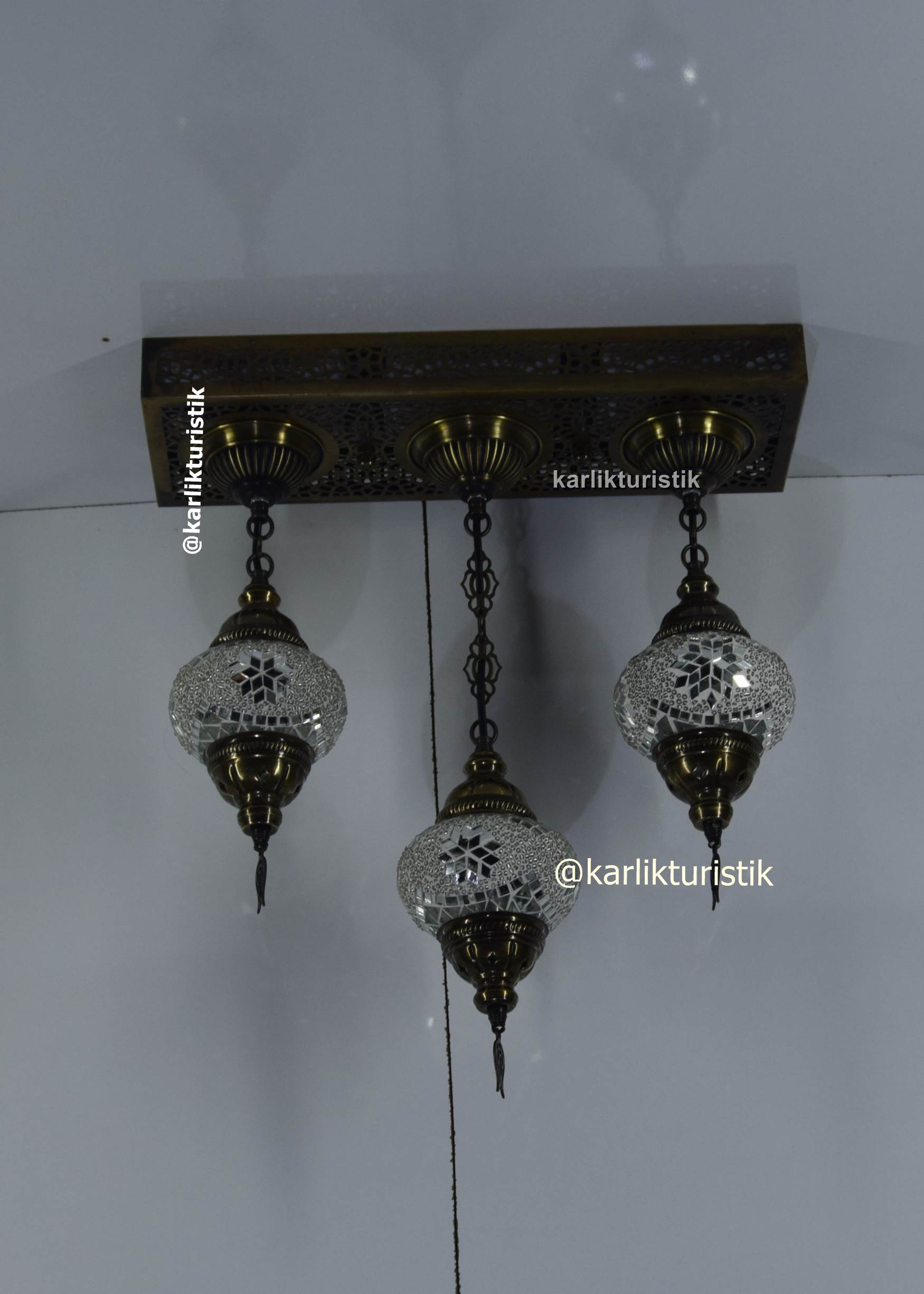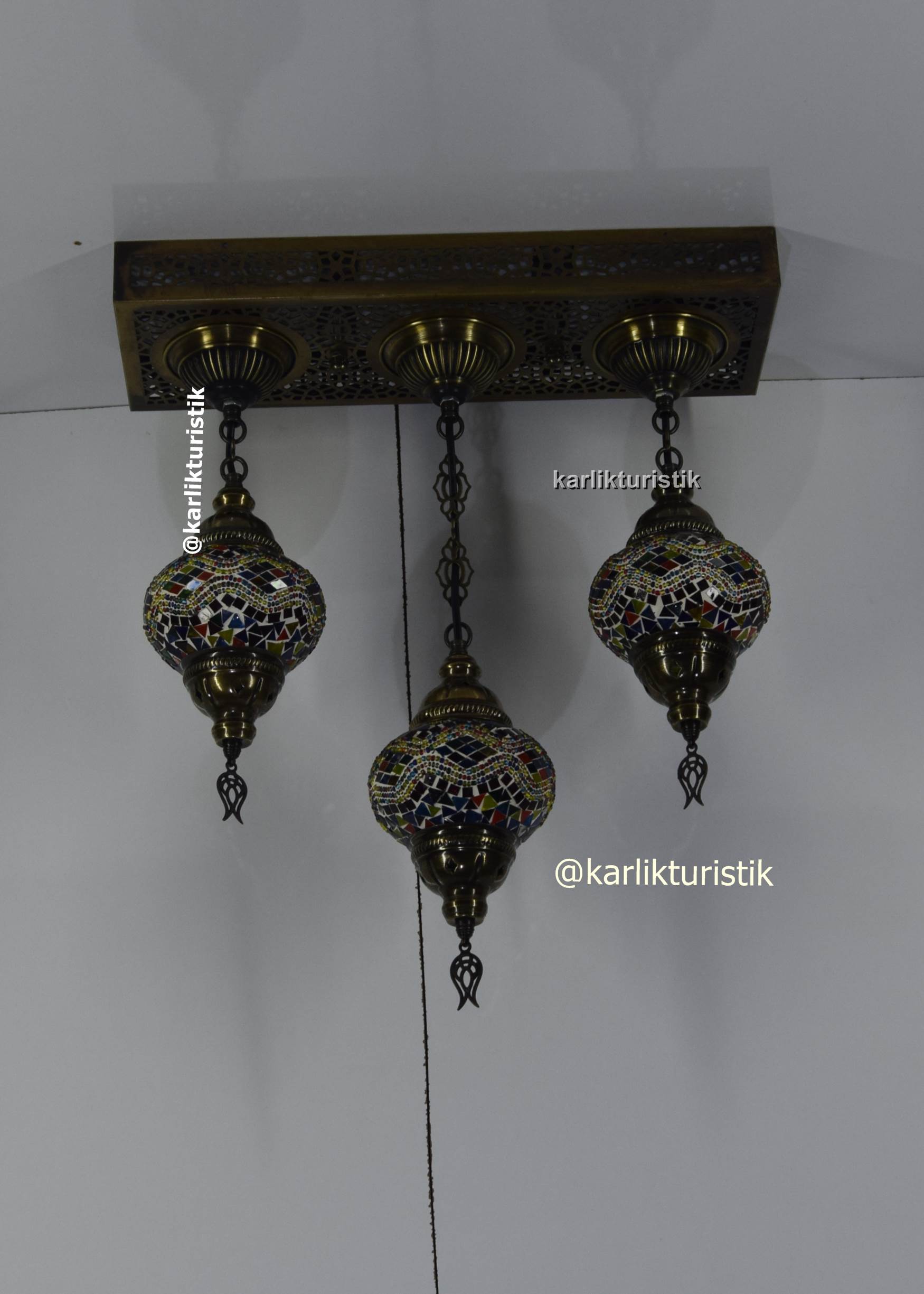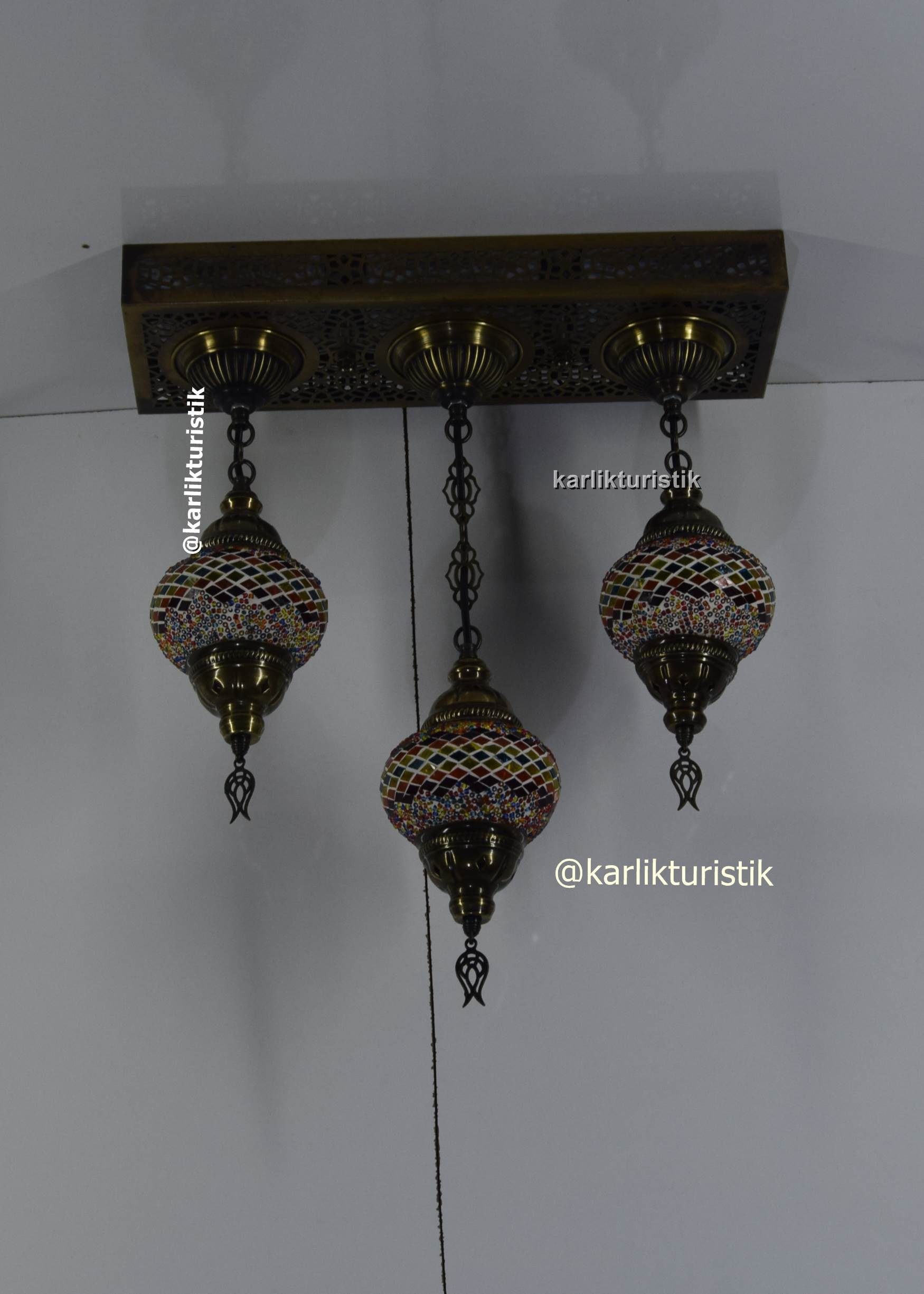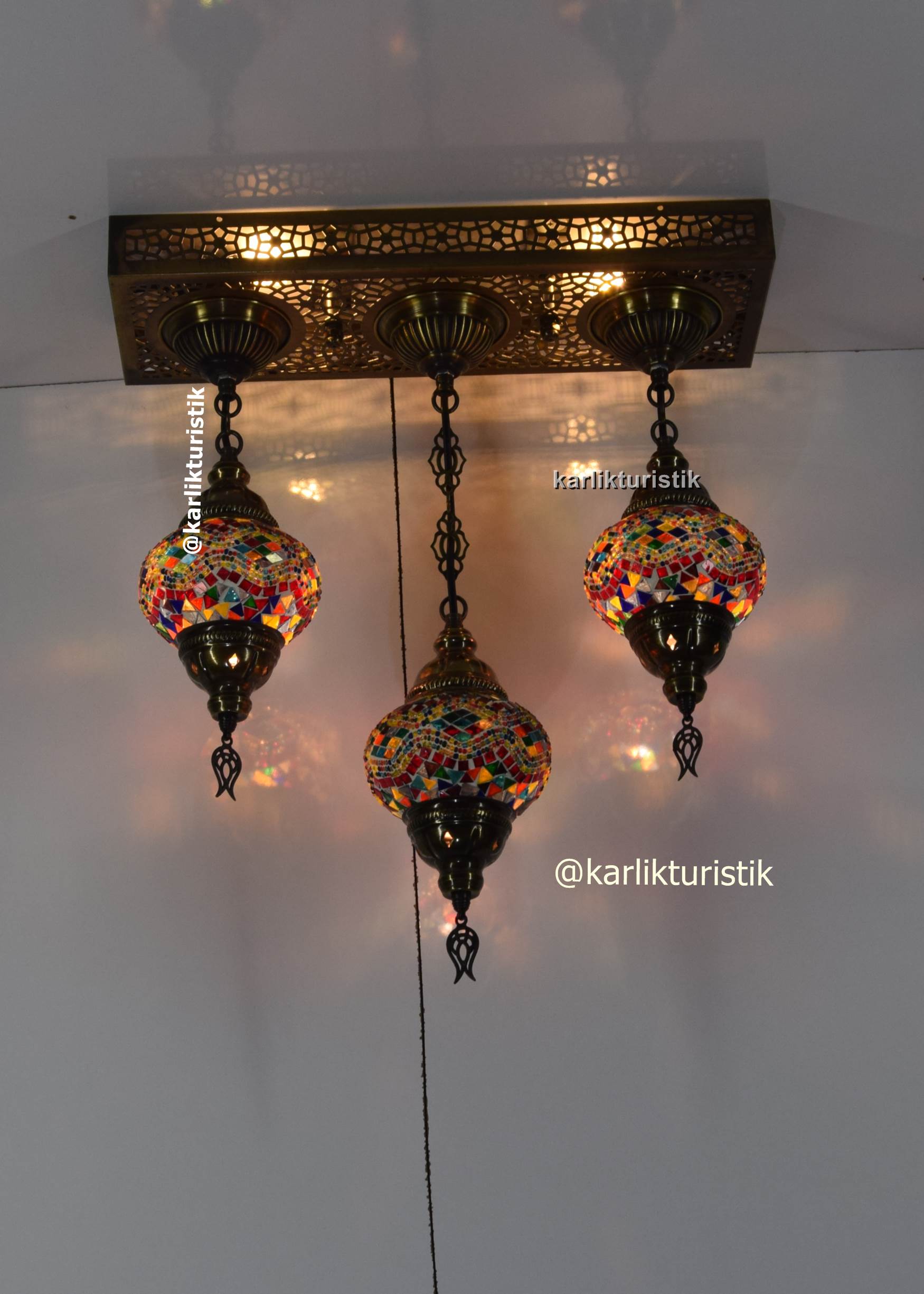 osmanlı avize ,orjinal eskitme sarkıt avize ,otantik lamba 3 lü dikdörtgen avize tavana sıfır mozaik camlı avize