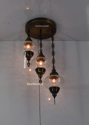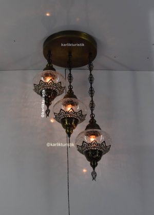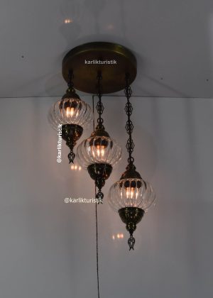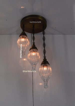 simetrik avize modelleri 3 lü tavana gömme oda aydınlatma sarkıt lamba decoratif osmanlı şeffaf çatlak camlı