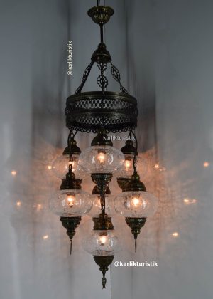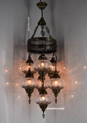 Geleneksel Avize,Türkiye’den El Yapımı Türk Lambası 9 Kırık Cam,Ev aydınlatmaları,Dekor Lambalar,Türkçe Avize 8+1 I-S-C-5311