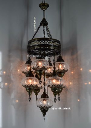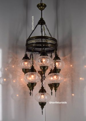 Geleneksel Avize,Türk El Yapımı Türk Lambası Çatlak Camlı,Ev aydınlatmaları,Dekor Lambalar,Türk Avize 6+1 I-S-C-5307