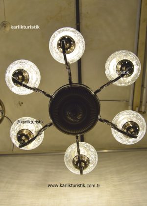 Geleneksel Avize,Türk El Yapımı Türk Lambası Çatlak Camlı,Ev aydınlatmaları,Dekor Lambalar,Türk Avize 6+1 I-S-C-5307 lazerli