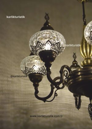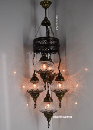 geleneksel Avize,El Yapımı Türk Lambası 5 şefaf kırık desen Cam,Ev ışıkları,Dekor Lambalar,Türksih Avize 5 Küre I-S-C-5303