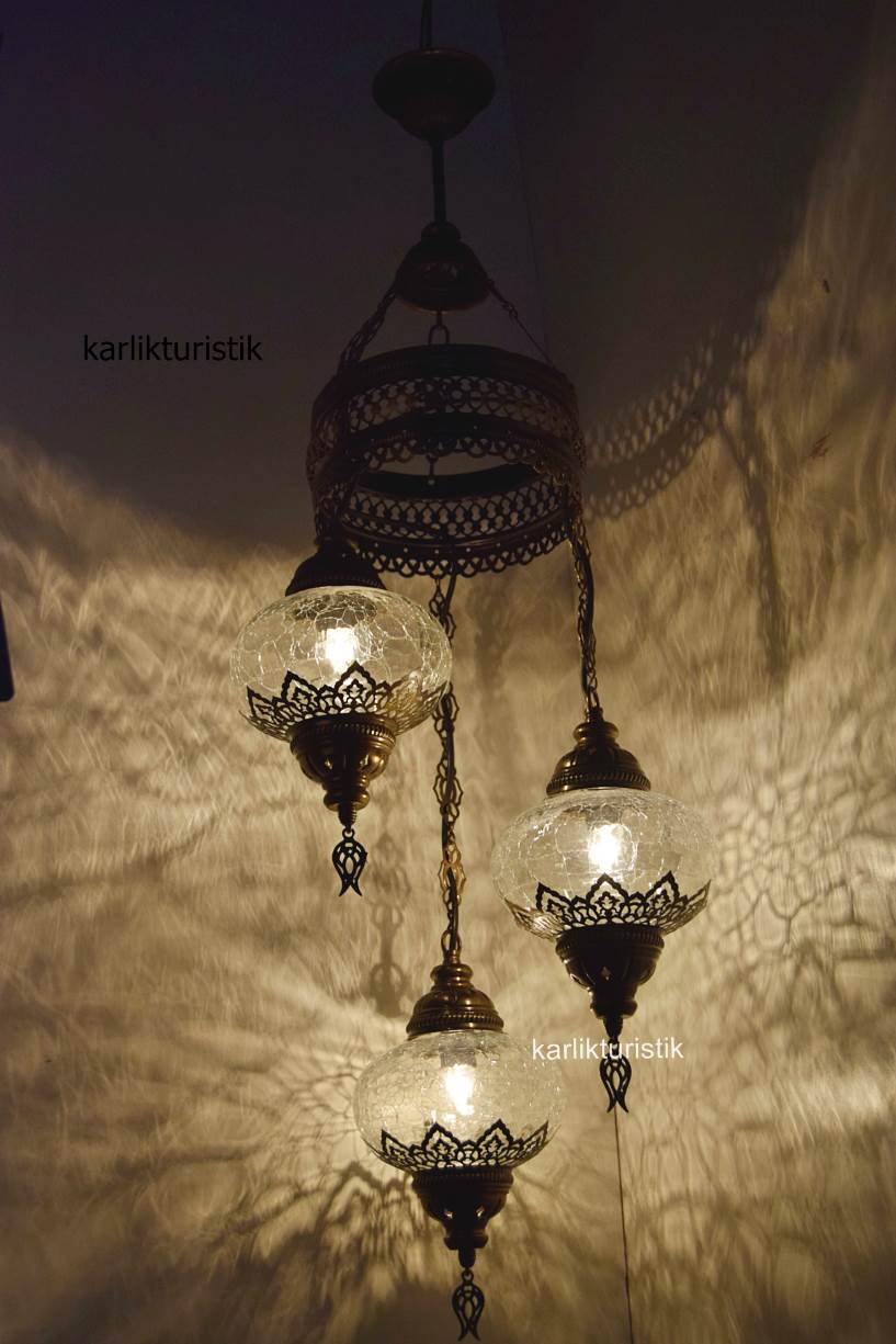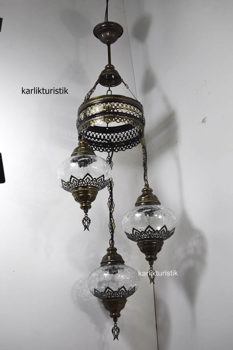 Osmanlı Lamba Avize 3lü Sarkıt Dekoratif Aydınlatma Tavan Lambası Şefaf Çatak Lazerli ISC5301 SARKIT 3LÜ ŞEFAF NO3 SET
