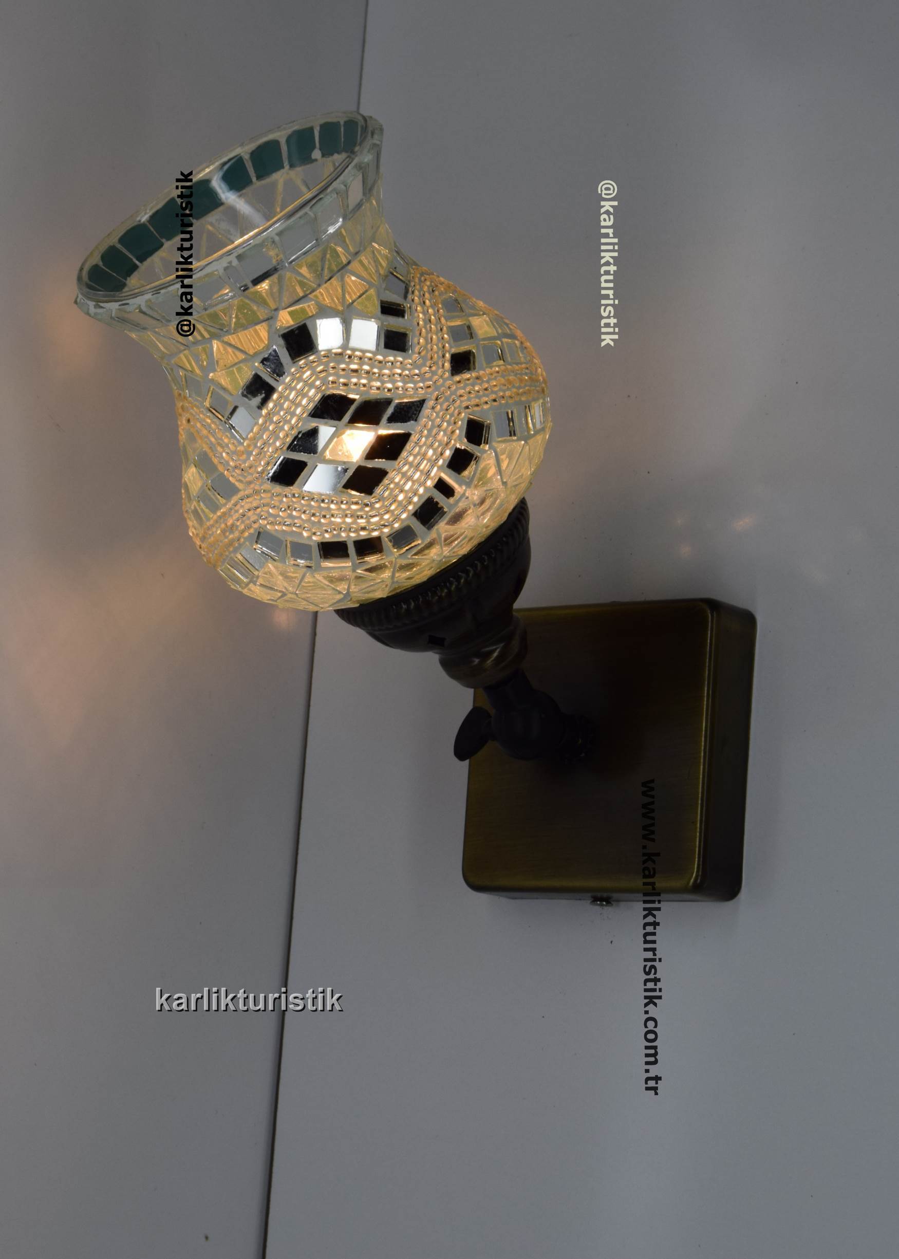Kafeterya, restoran ve butik otel projeleri için tasarlanan bu mafsallı (oynar başlıklı) mozaik aplik, mekanınıza hem otantik bir hava katar hem de fonksiyonel aydınlatma çözümü sunar. Karlık Turistik kalitesiyle üretilen bu model, geleneksel Türk cam sanatını modern dekorasyon ihtiyaçlarıyla buluşturuyor.