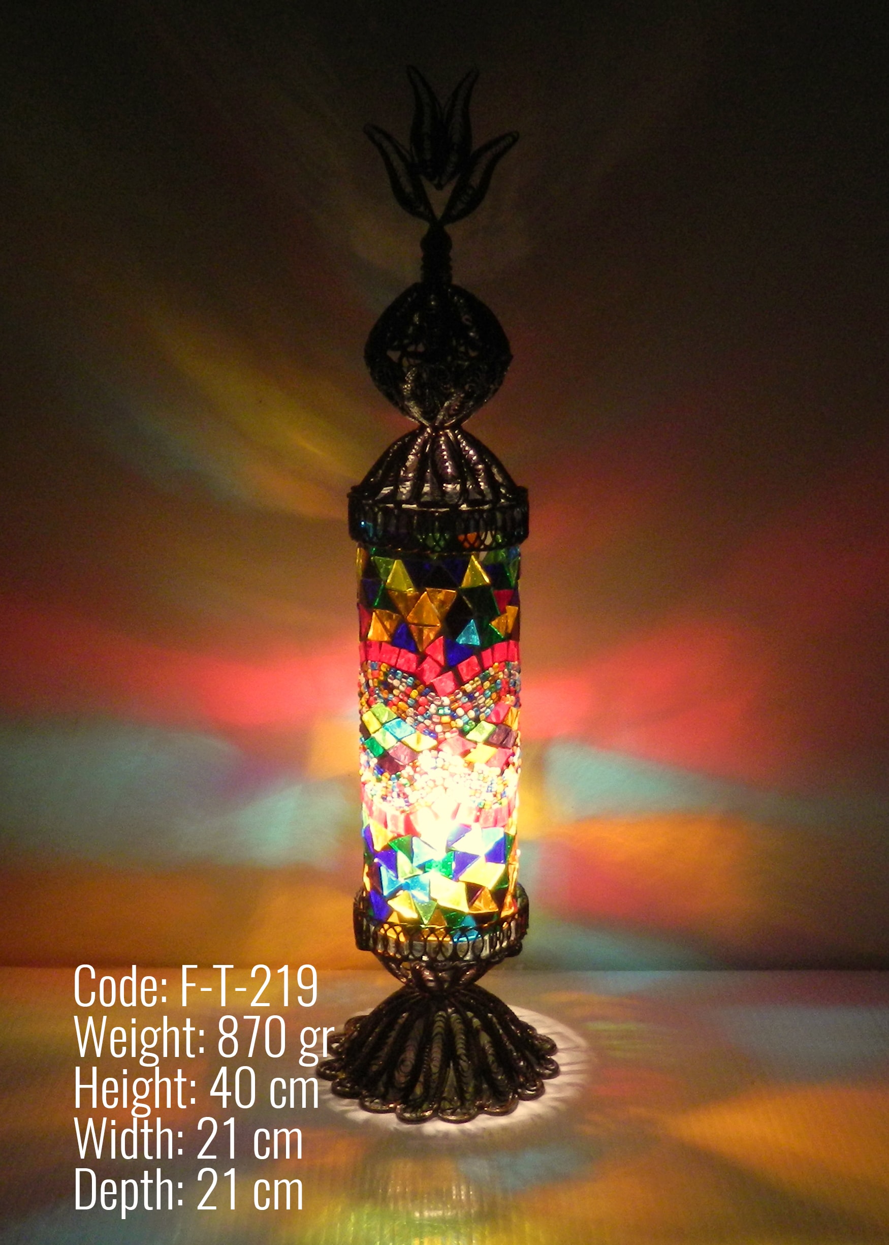 Şeffaf cam üzerine tek tek yapıştırılan mozaik cam kullanılmıştır.