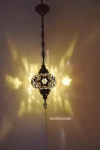 - Estetik Işıltı: Mozaik lambaların renkli camları, ışığın yansımasıyla özgün bir ışıltı oluşturur. Bu ışıltı, mekanlara estetik bir değer katar.