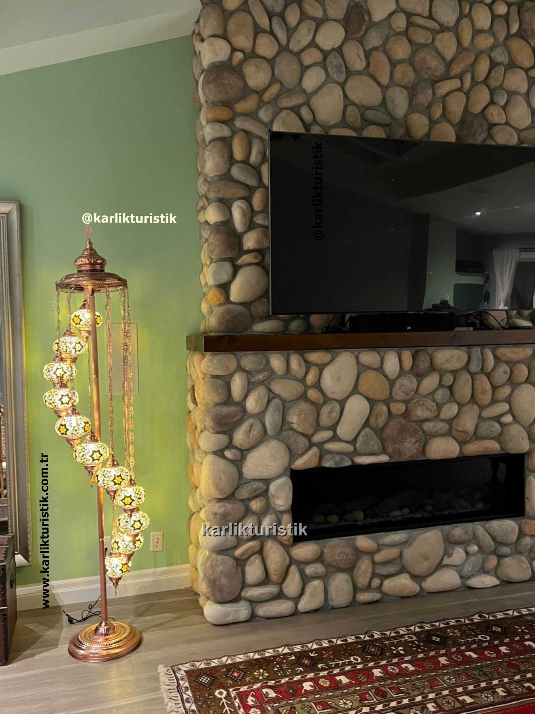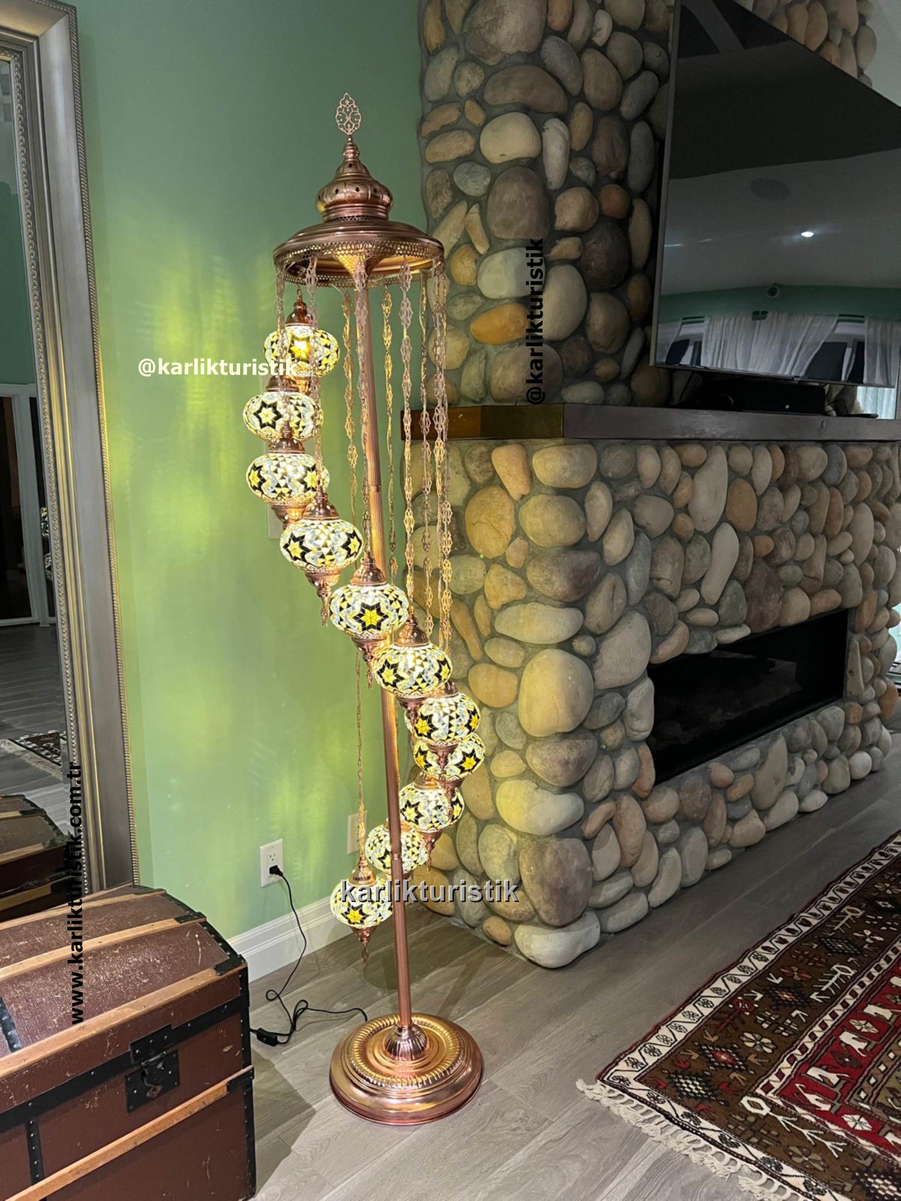Türk 11  Camlı  Mozaik Lambader: Rose Gold Kaplama, El Yapımı Osmanlı Tarzı Köşe Lambası