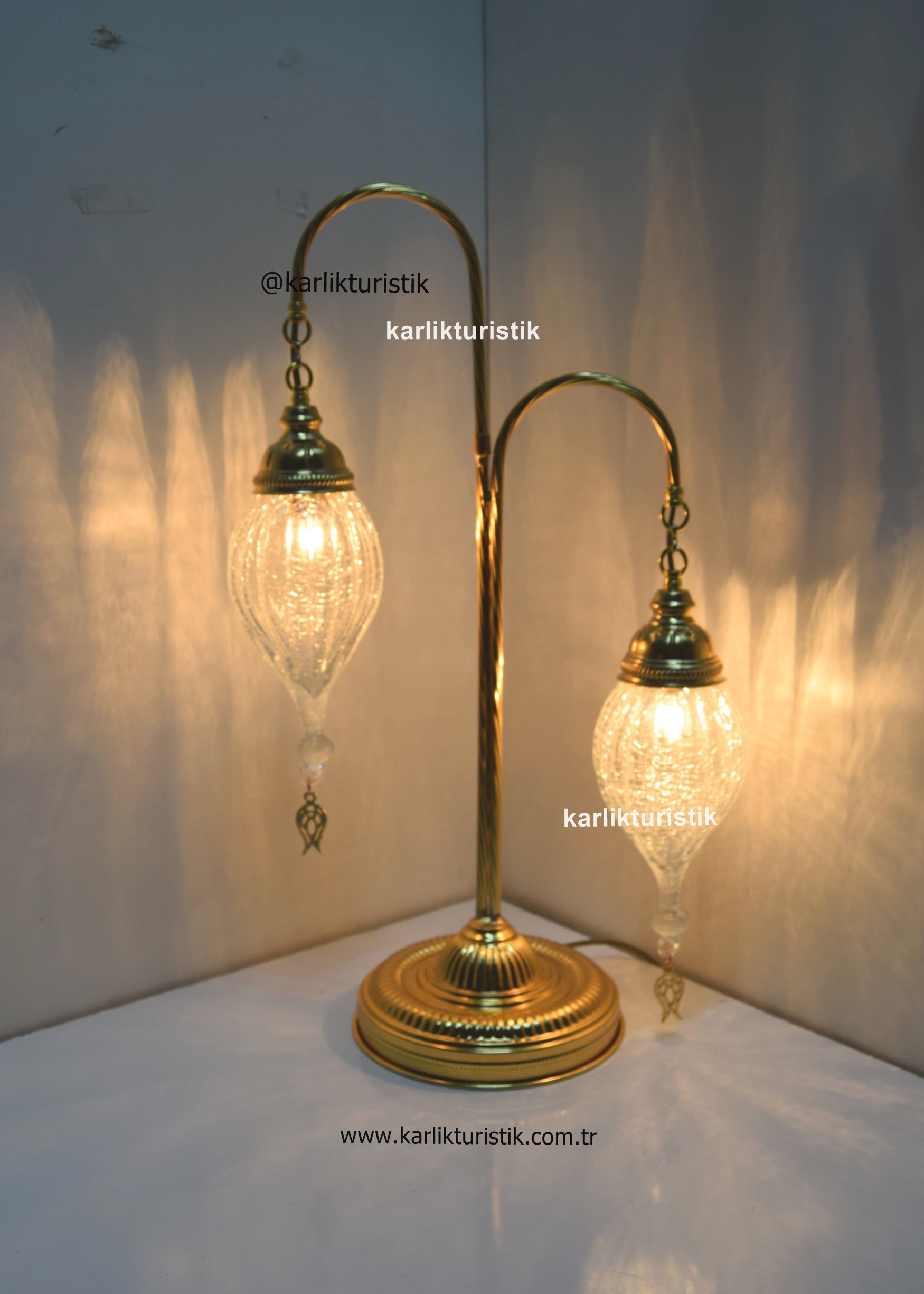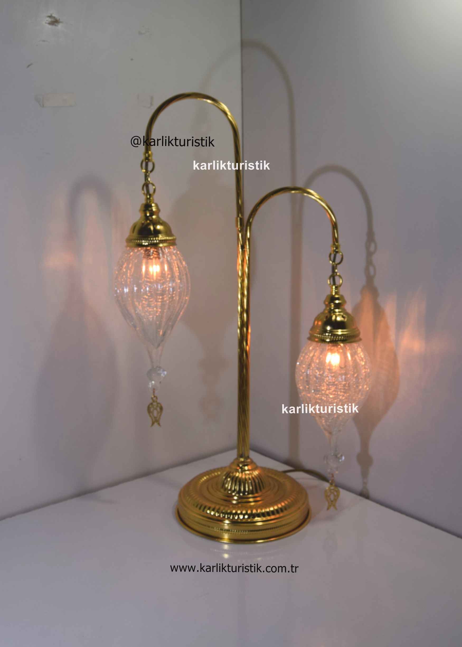 Türk ,Osmanlı ve Selçuklu tarzı otantik lambader 2 li Küçük Çekeme Üfleme Camlı Altın kaplama Lamba